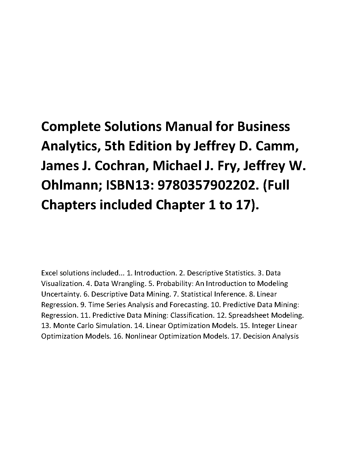 Business Analytics 5th Edition Solutions Manual by James R. Evans and David L. Olsen