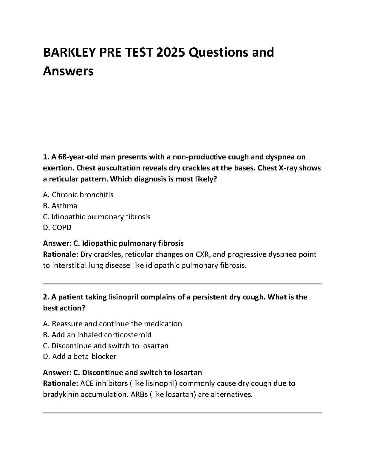 Barkley Pre-Test 2025 Questions and Answers: Ace Your Exams!