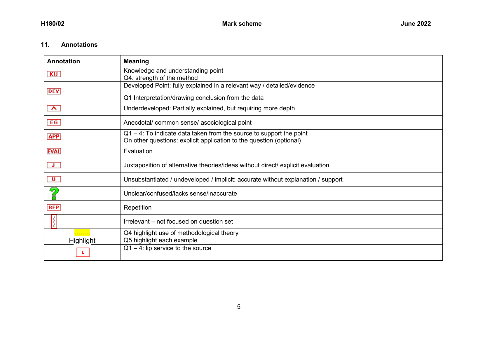 OCR AS LEVEL SOCIOLOGY PAPER 2 MAY 2022 MARK SCHEME (H180/02: Researching and understanding social inequalities)