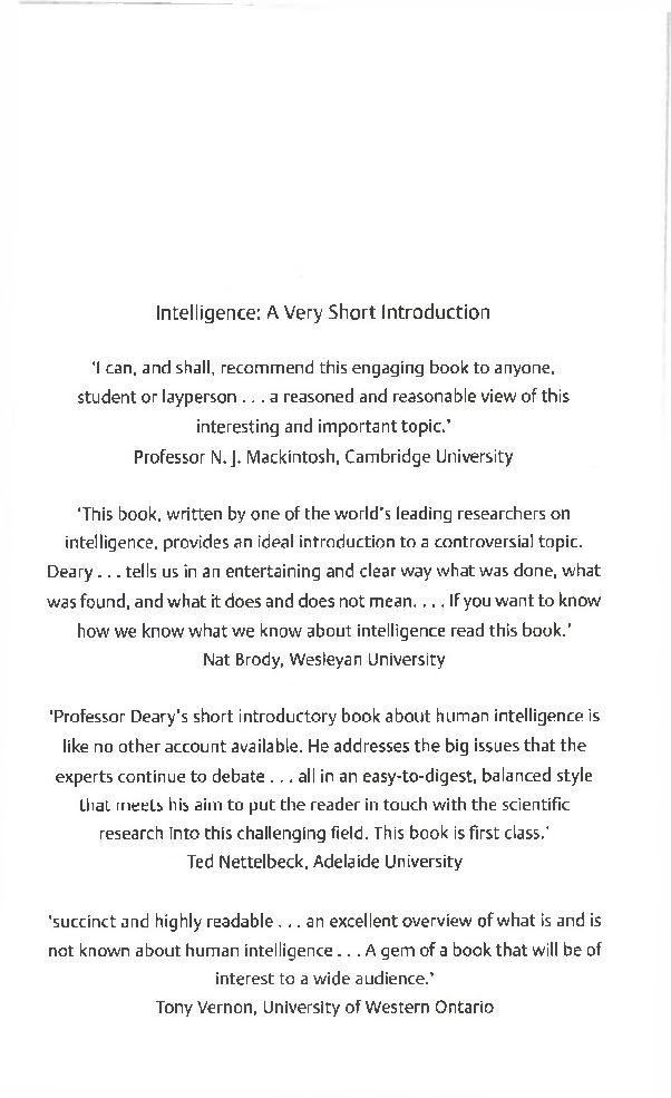 Intelligence: A Very Short Introduction by Ian J. Deary - Oxford University Press