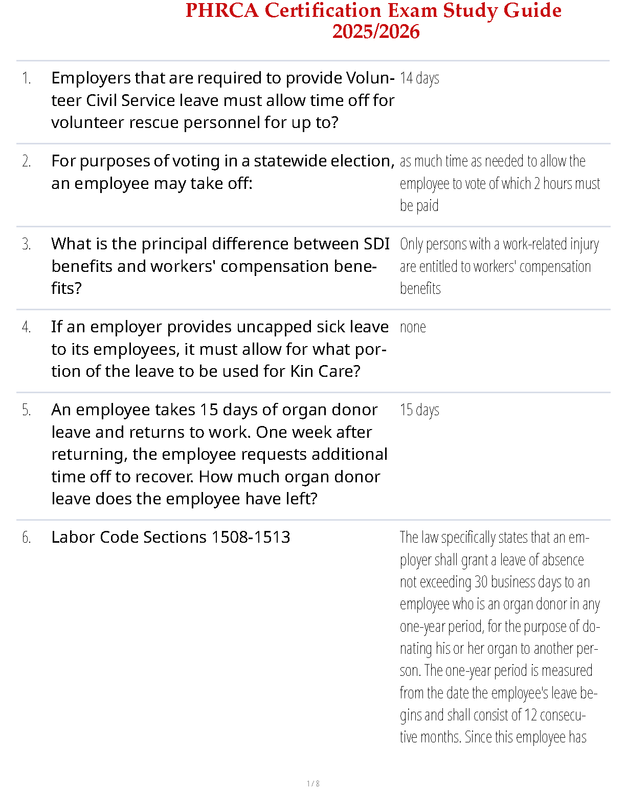 Comprehensive study guide for the PHRCA Certification Exam in 2025/2026. This resource is designed to help you master the key concepts and pass your exam with confidence, avoiding costly resits. Prepare effectively with concise explanations and practice questions.