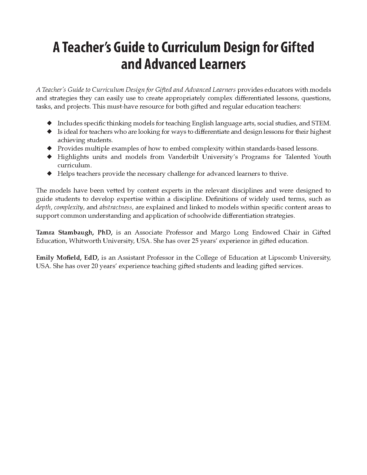 A Teacher's Guide to Curriculum Design for Gifted and Advanced Learners by Tamra Stambaugh and Emily Mofield (1st Edition)