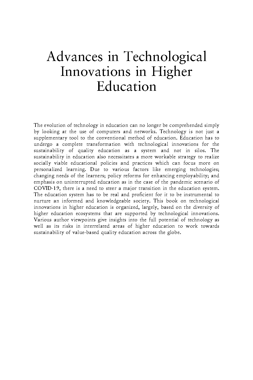 Advances in Technological Innovations in Higher Education: Theory and Practices - Edited by Adarsh Garg, B. V. Babu, and Valentina E. Balas
