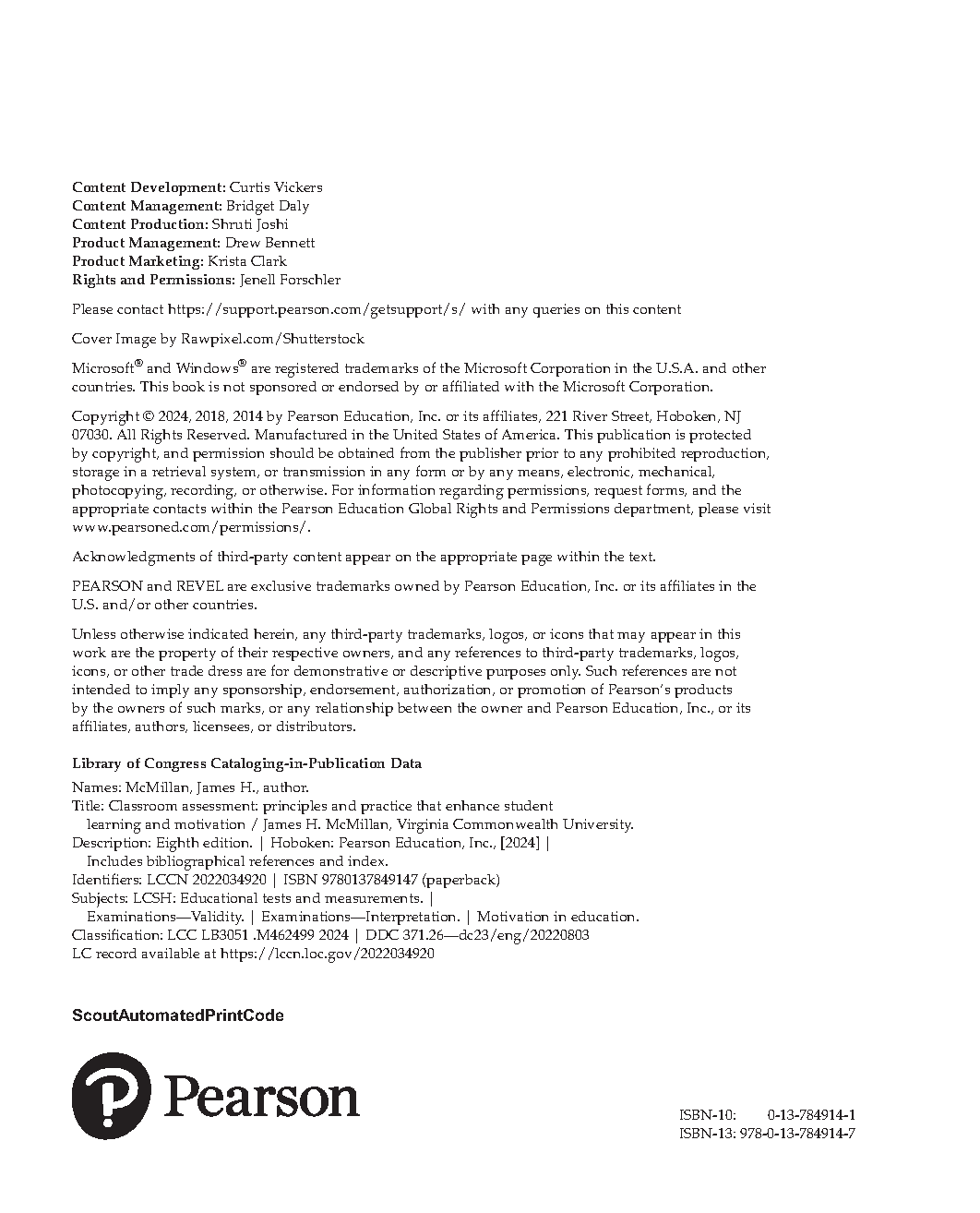 Master classroom assessment strategies with this comprehensive guide. The Eighth Edition of James H. McMillan's Classroom Assessment provides educators with the principles and practices to effectively enhance student learning and motivation. Prepare for your exams with confidence and ace them on the first try, avoiding any resits. This 2024/2025 academic year resource offers valuable insights into assessment techniques for optimal student success.