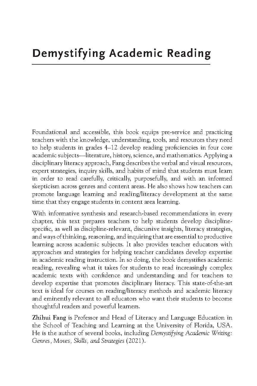 Demystifying Academic Reading: A Disciplinary Literacy Approach to Reading Across Content Areas by Zhihui Fang (First Edition)