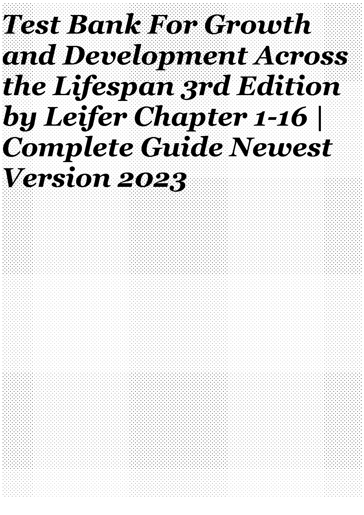 Ace your exams with this comprehensive test bank for Papalia, Olds, and Feldman's Growth and Development Across the Lifespan, 3rd Edition. This complete guide covers chapters 1-16, providing in-depth coverage to help students master the material and pass with confidence. The newest 2023 version ensures you're studying the most up-to-date information available. Avoid resits and achieve academic success!