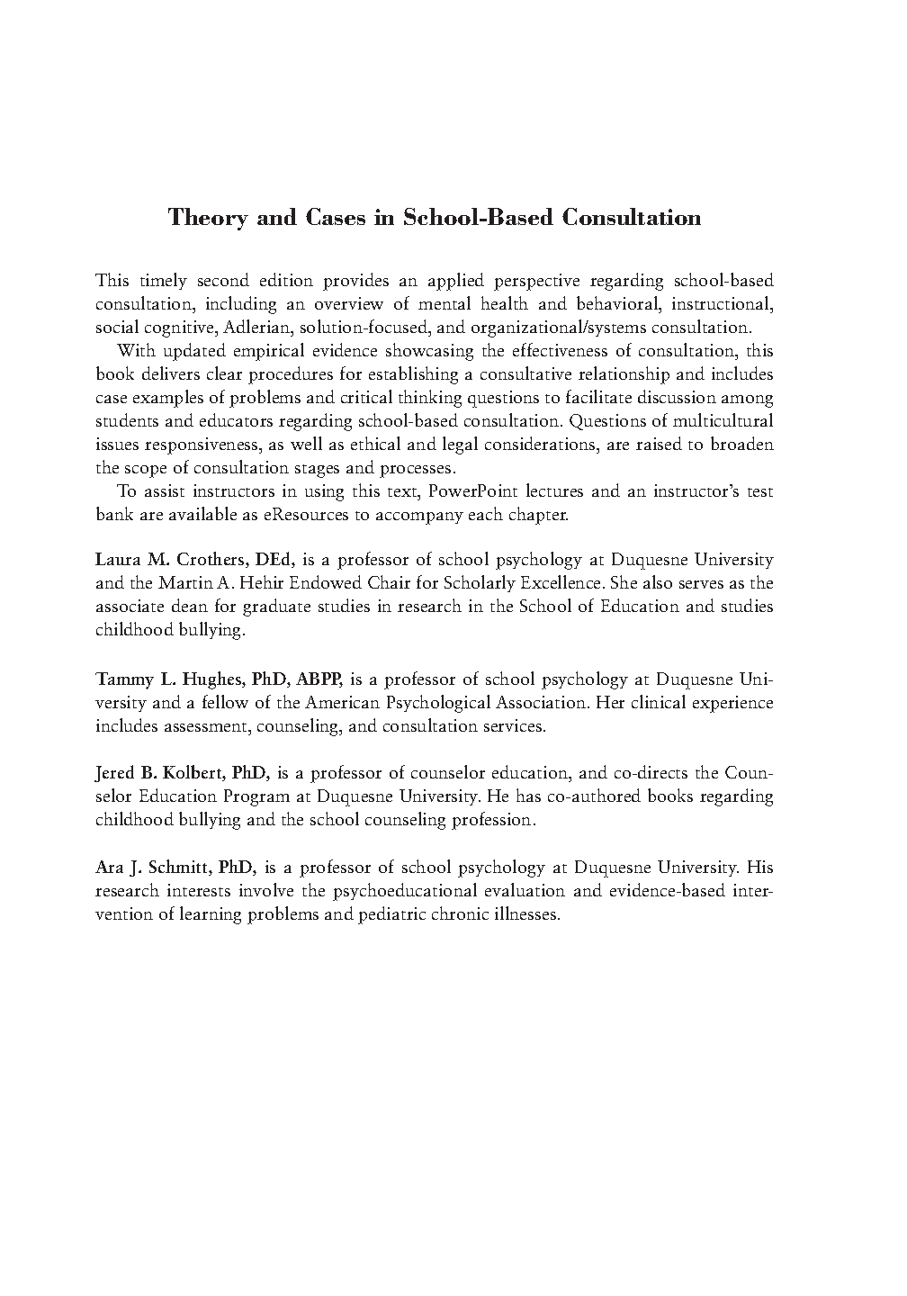 Theory and Cases in School-Based Consultation, Second Edition: by Laura M. Crothers, Tammy L. Hughes, Jered B. Kolbert, and Ara J. Schmitt