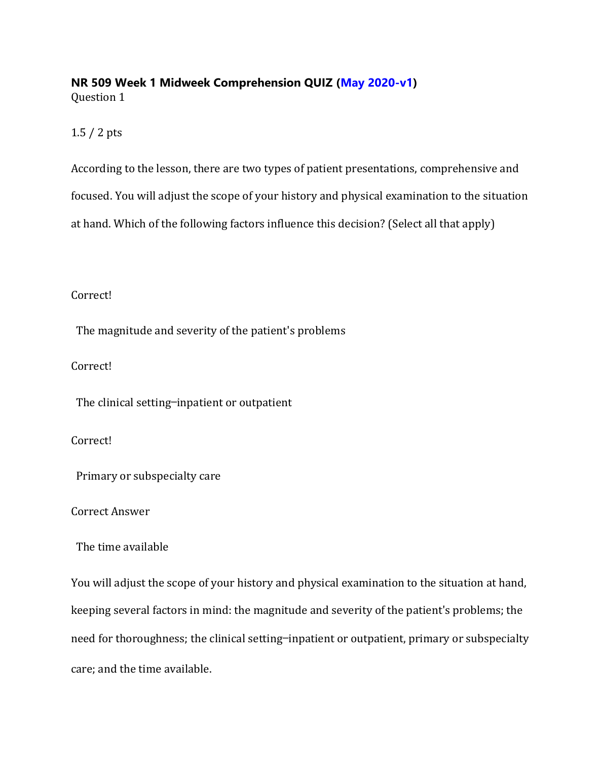 NR 509 Week 1 Midweek Comprehension QUIZ COMPLETE SOLUTION RATED A+ 2023