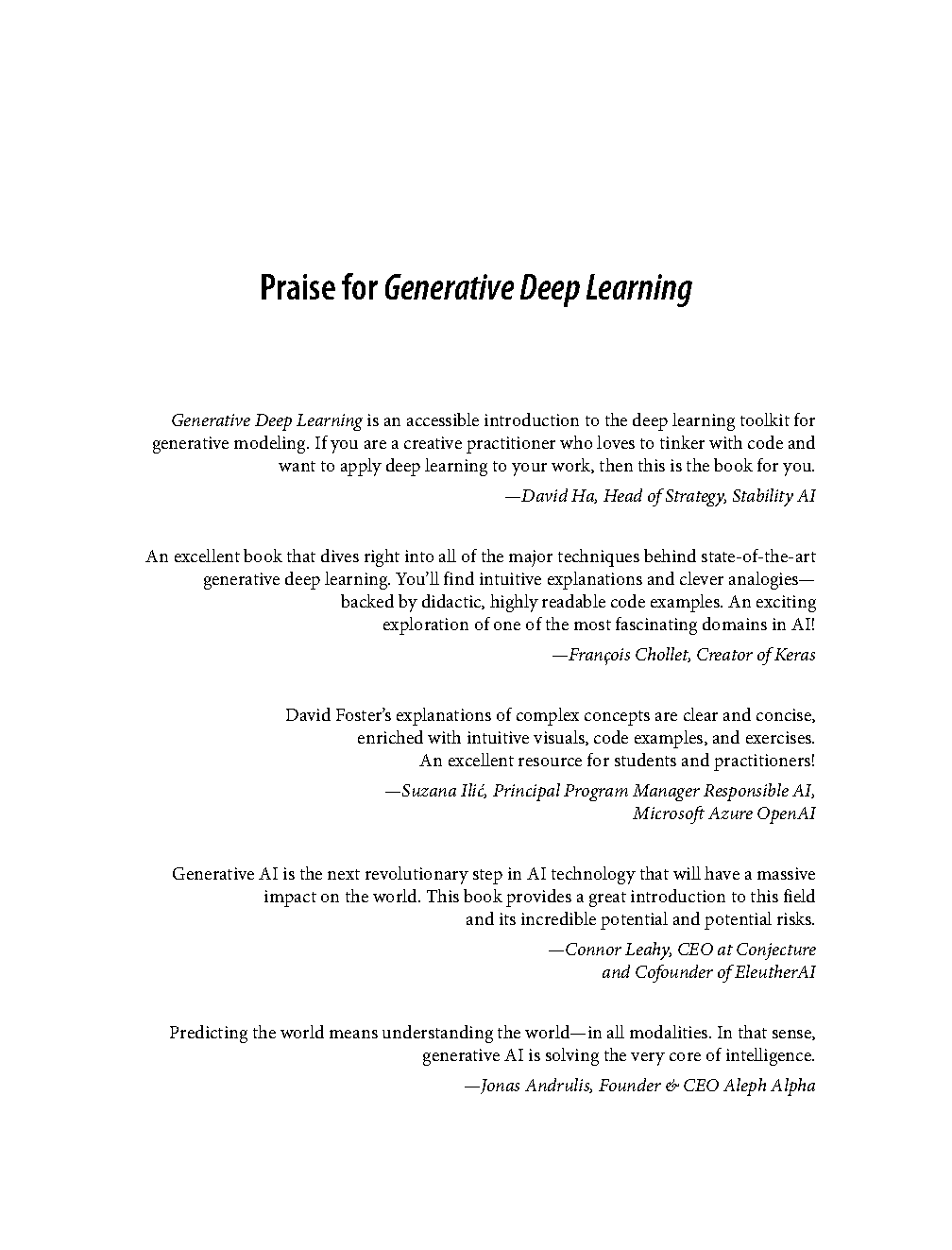 Ace your exams on the first try with this comprehensive guide to Generative Deep Learning, 2nd edition, by David Foster and Karl Friston. This resource is perfectly tailored for the 2024-2025 academic year, providing in-depth explanations and practical examples to help you grasp complex concepts and excel in your coursework. Master the art of teaching machines to paint, write, compose, and play.