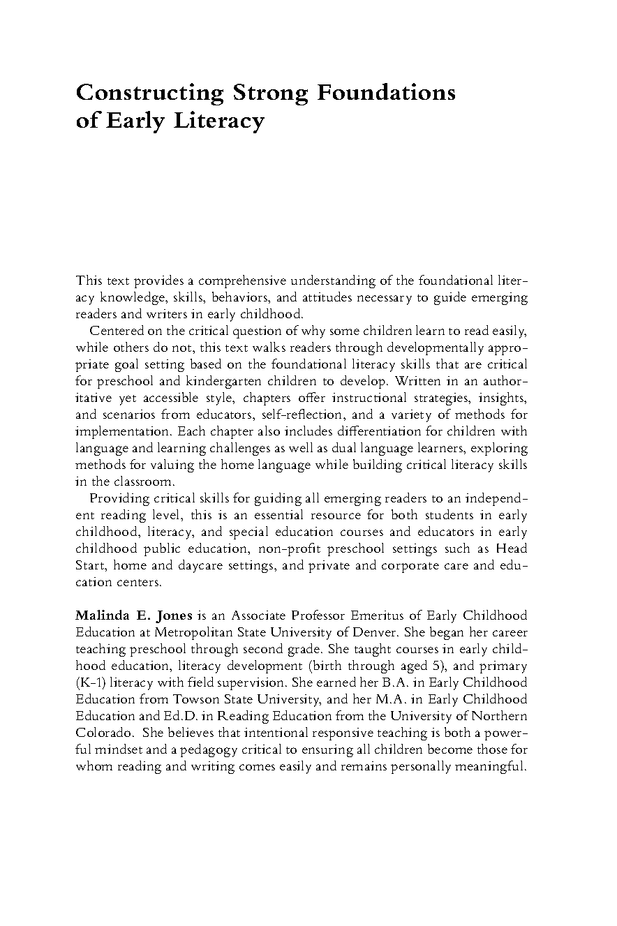 Constructing Strong Foundations of Early Literacy by Malinda E. Jones and Ann E. Christensen
