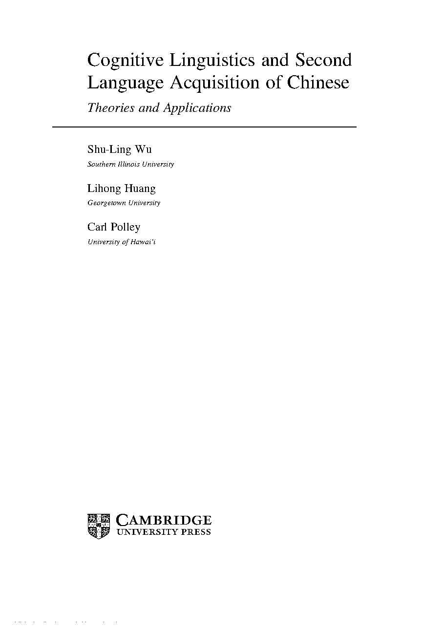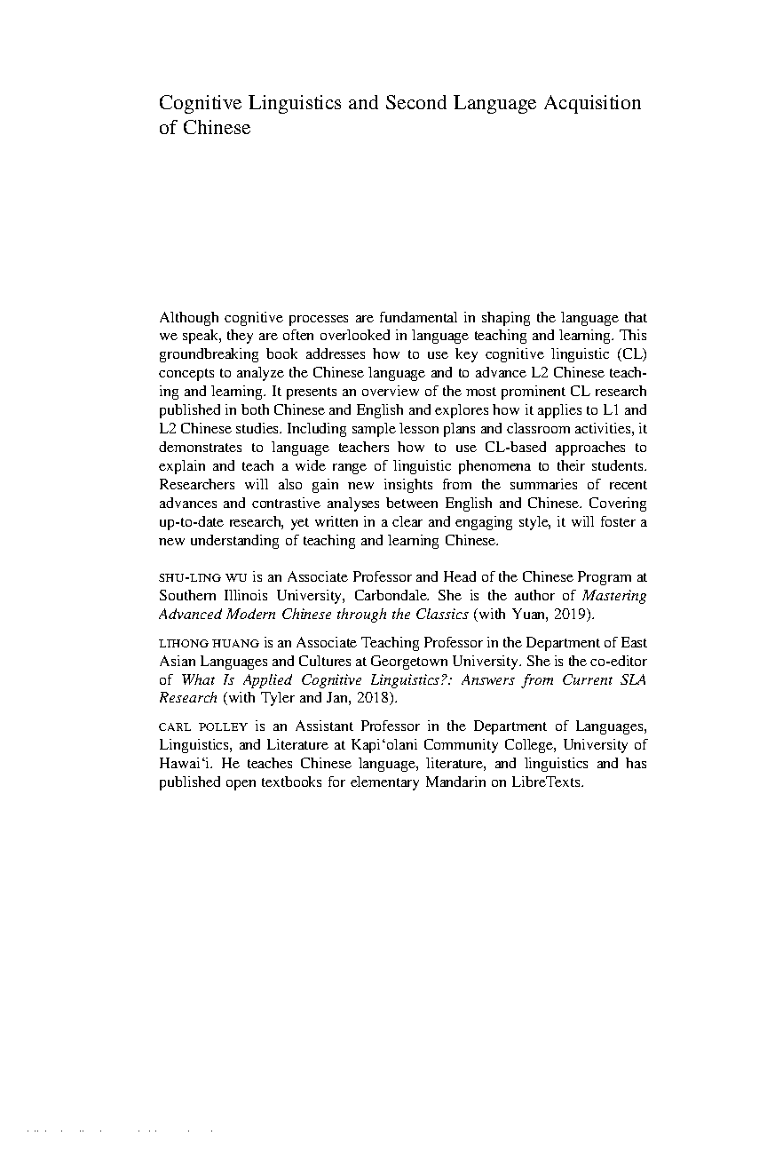 Cognitive Linguistics and Second Language Acquisition of Chinese: Theories and Applications by Shu-Ling Wu, Lihong Huang, and Carl Polley