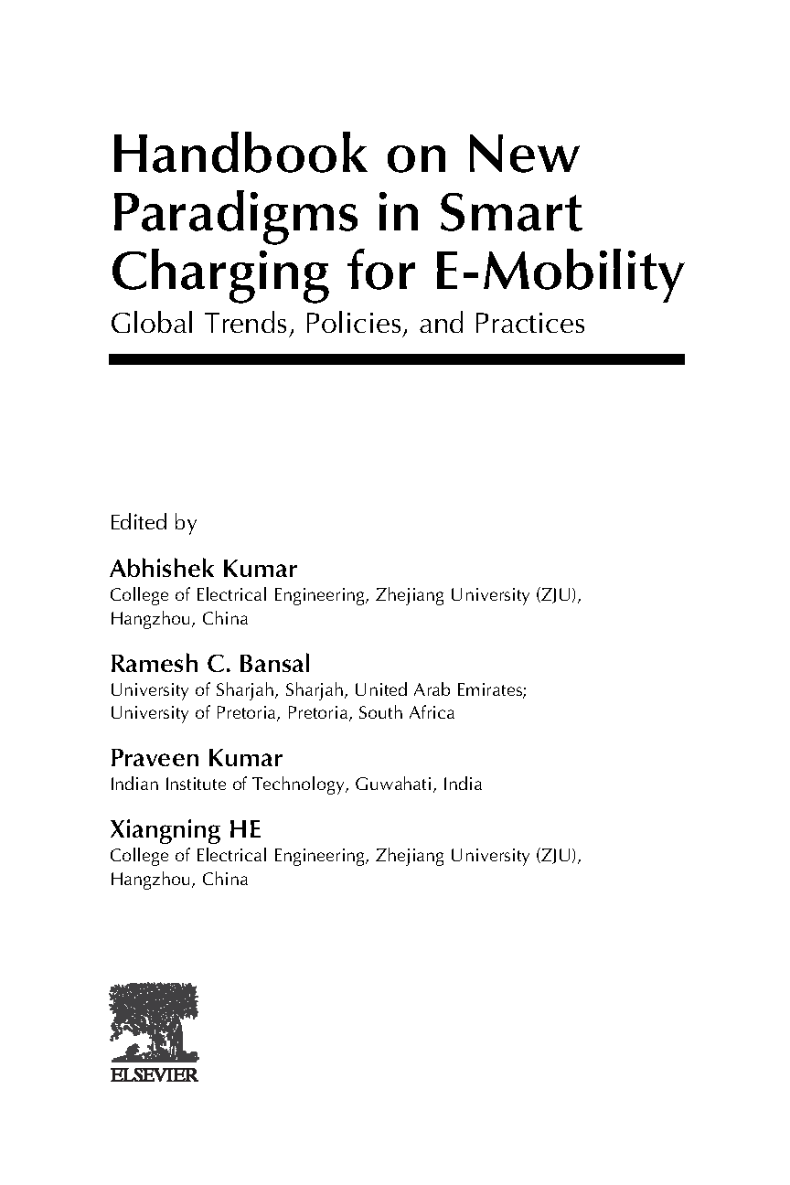 Handbook on New Paradigms in Smart Charging for E-mobility: Global Trends, Policies, and Practices - Edited by Abhishek Kumar, Ramesh C. Bansal, Praveen Kumar, and Xiangning He