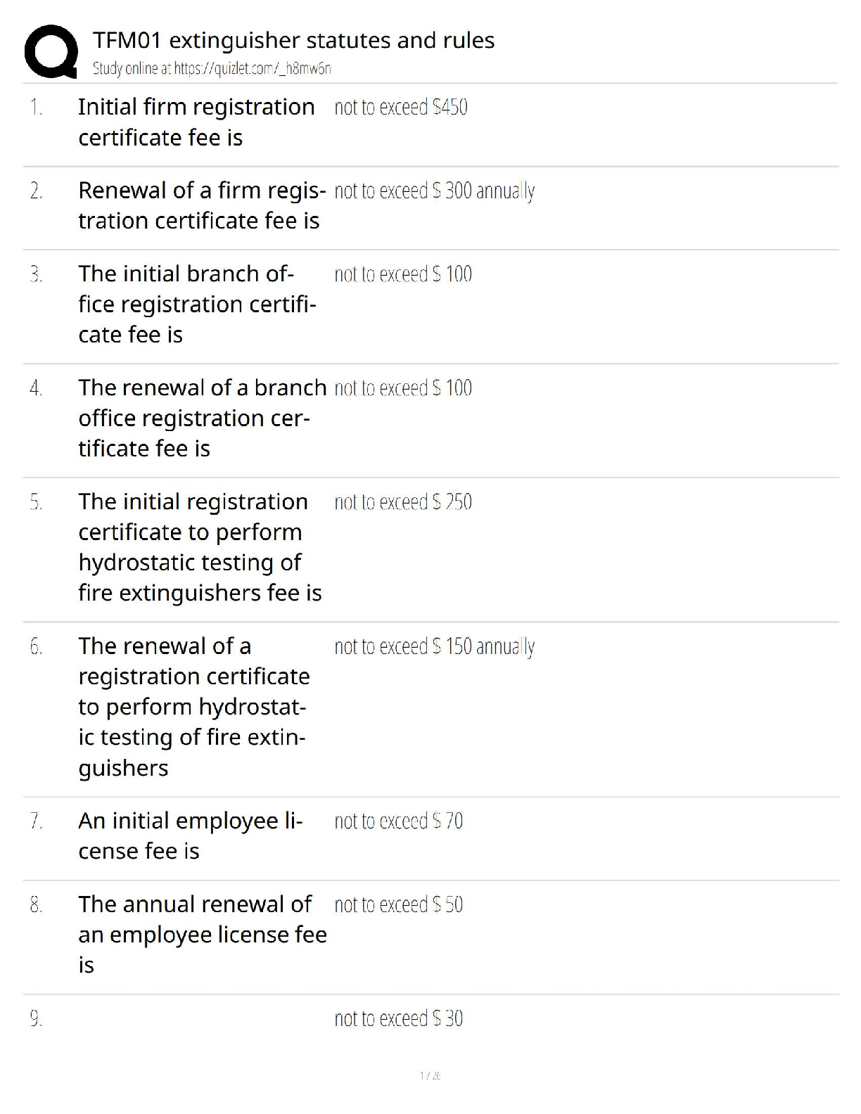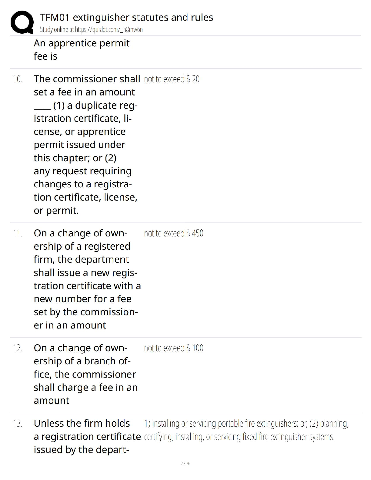 Master the TFM01 extinguisher statutes and regulations with this concise guide, designed to help students ace their exams on the first attempt. This resource covers initial and renewal fees for firm registration, branch office registration, and employee licensing, ensuring exam readiness and preventing resits.