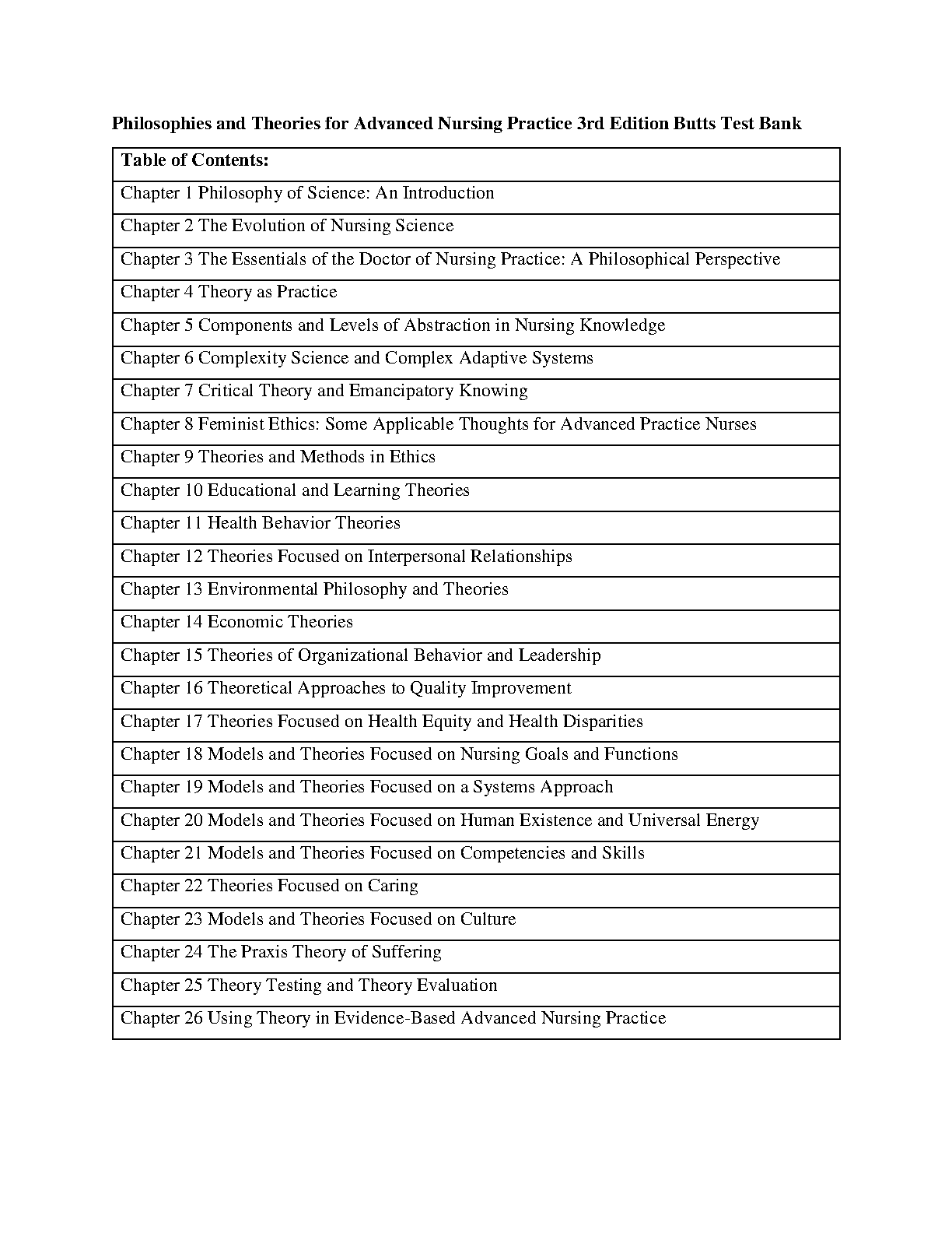 Test Bank for Philosophies and Theories for Advanced Nursing Practice, 3rd Edition by Janie B. Butts and Karen L. Rich