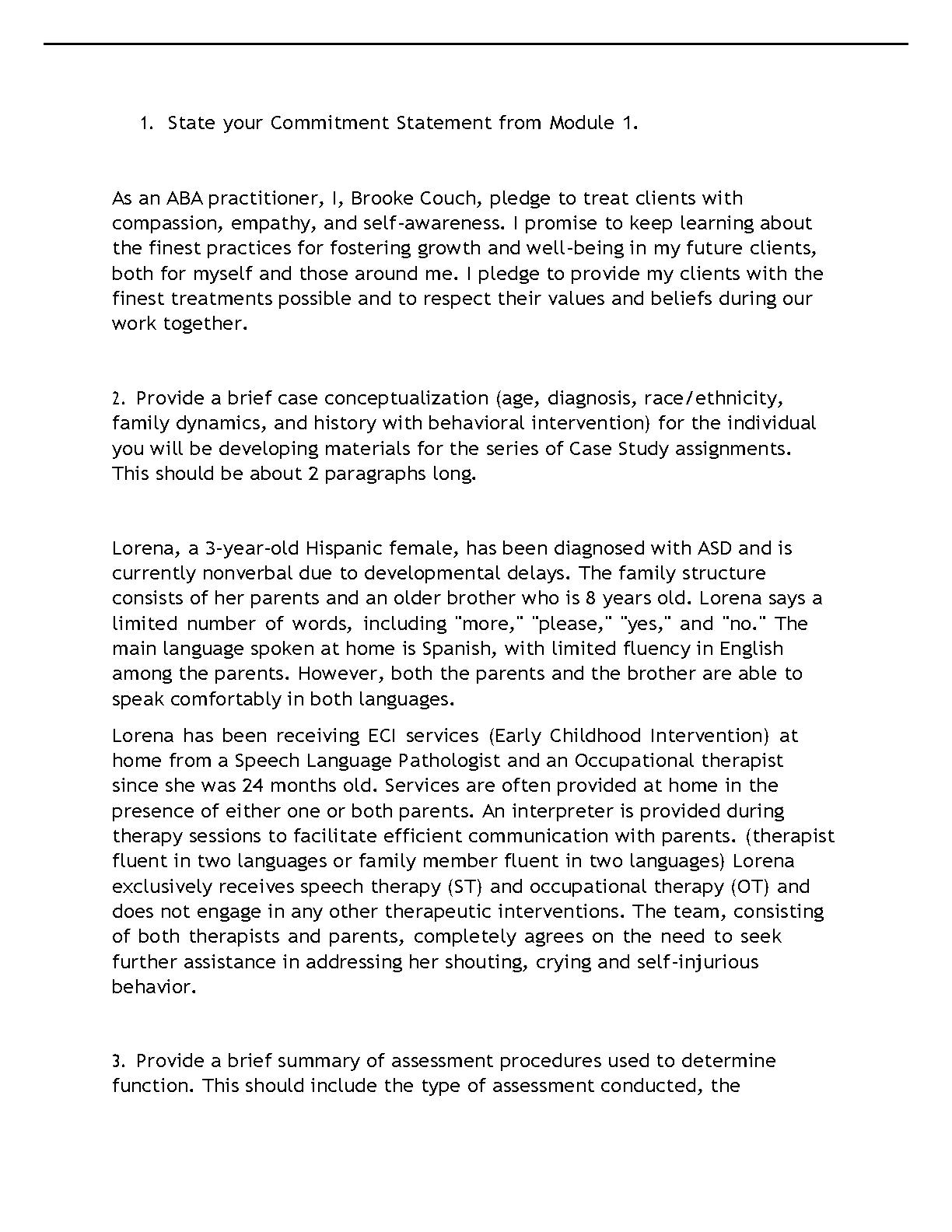 Case Conceptualization for Lorena: A 3-Year-Old Hispanic Female with ASD - Brooke Couch, MS, BCBA