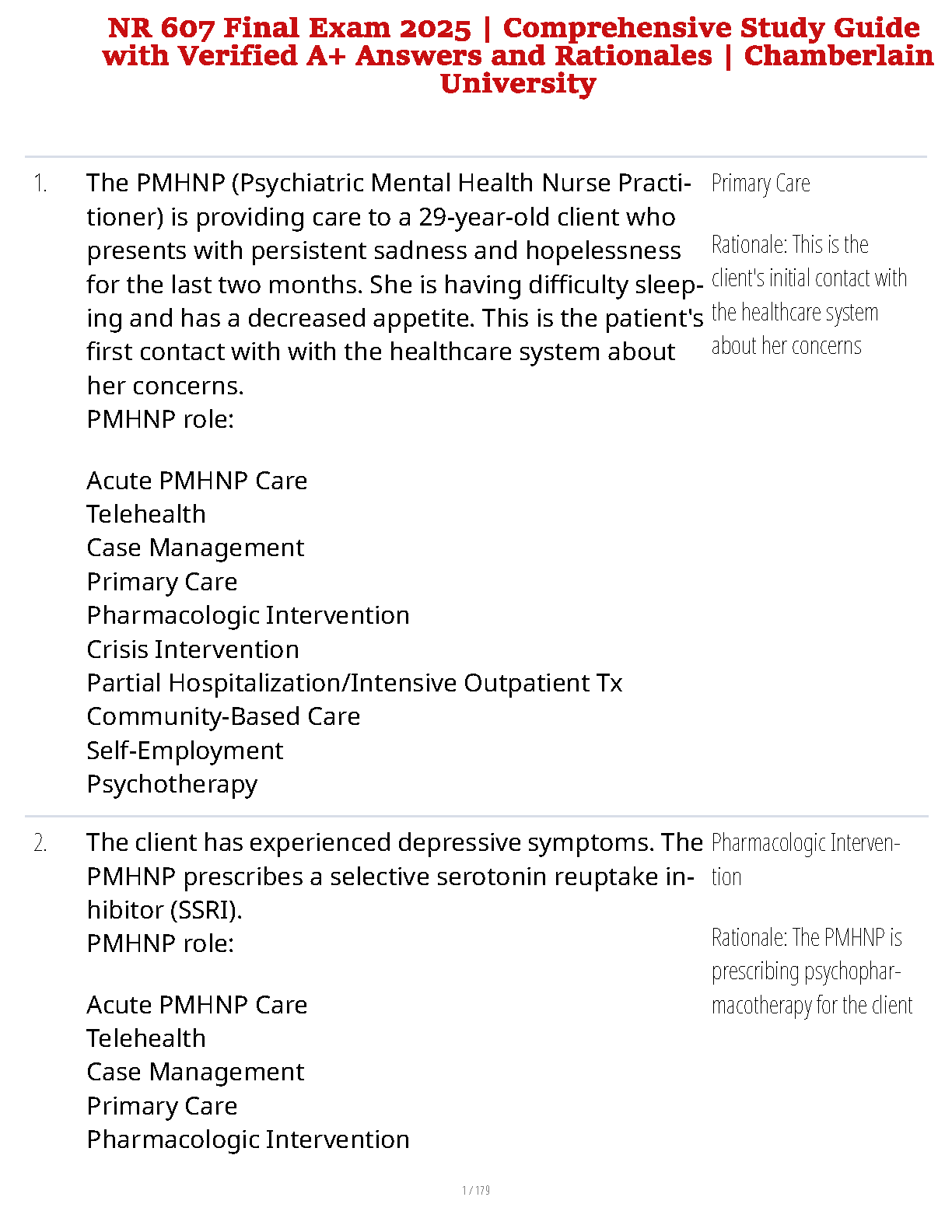 NR 607 Final Exam 2025: Comprehensive Study Guide with Verified A+ Answers and Rationales by Chamberlain University