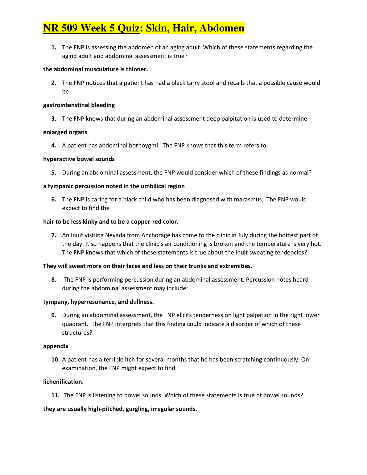 NR 509 Week 5 Quiz: Skin, Hair, Abdomen. QUESTIONS AND ANSWERS 2023/2024