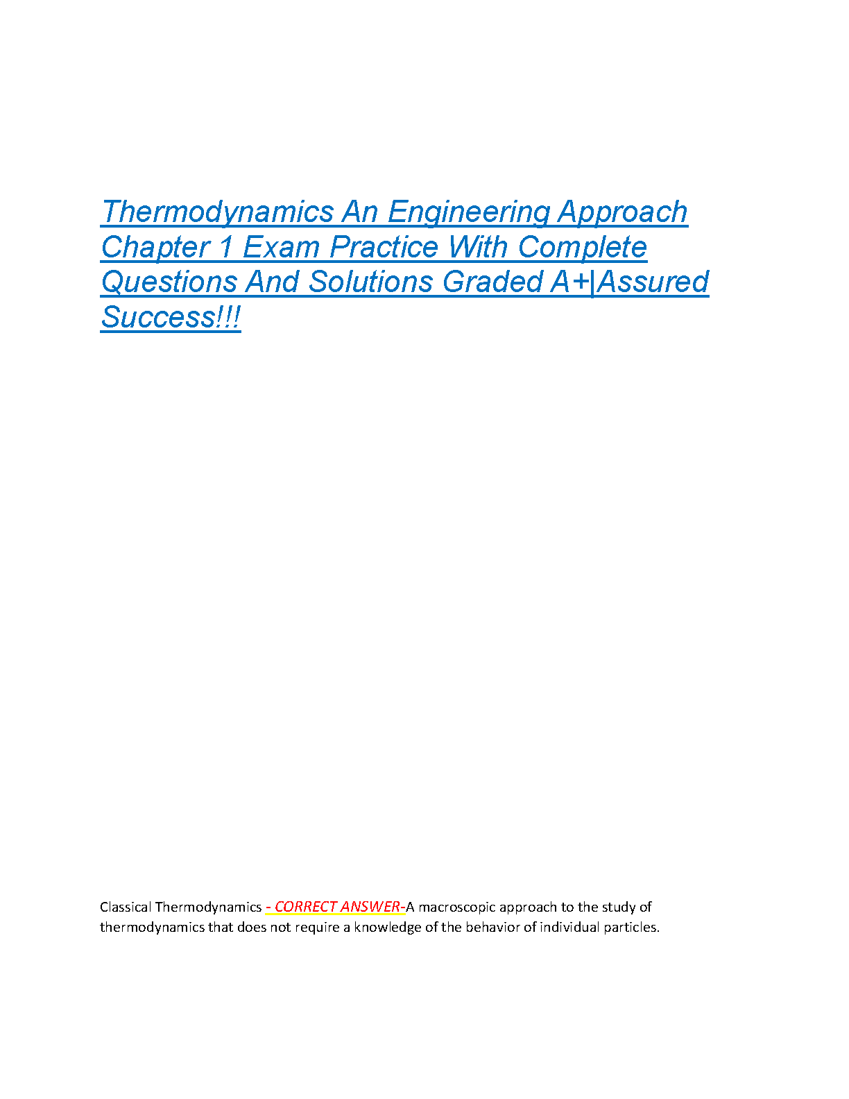 Ace your Thermodynamics exam with this comprehensive Chapter 1 practice set. This resource includes complete solutions, ensuring you understand the material thoroughly and achieve an A+. Perfect for students aiming to pass on their first attempt and avoid resits.