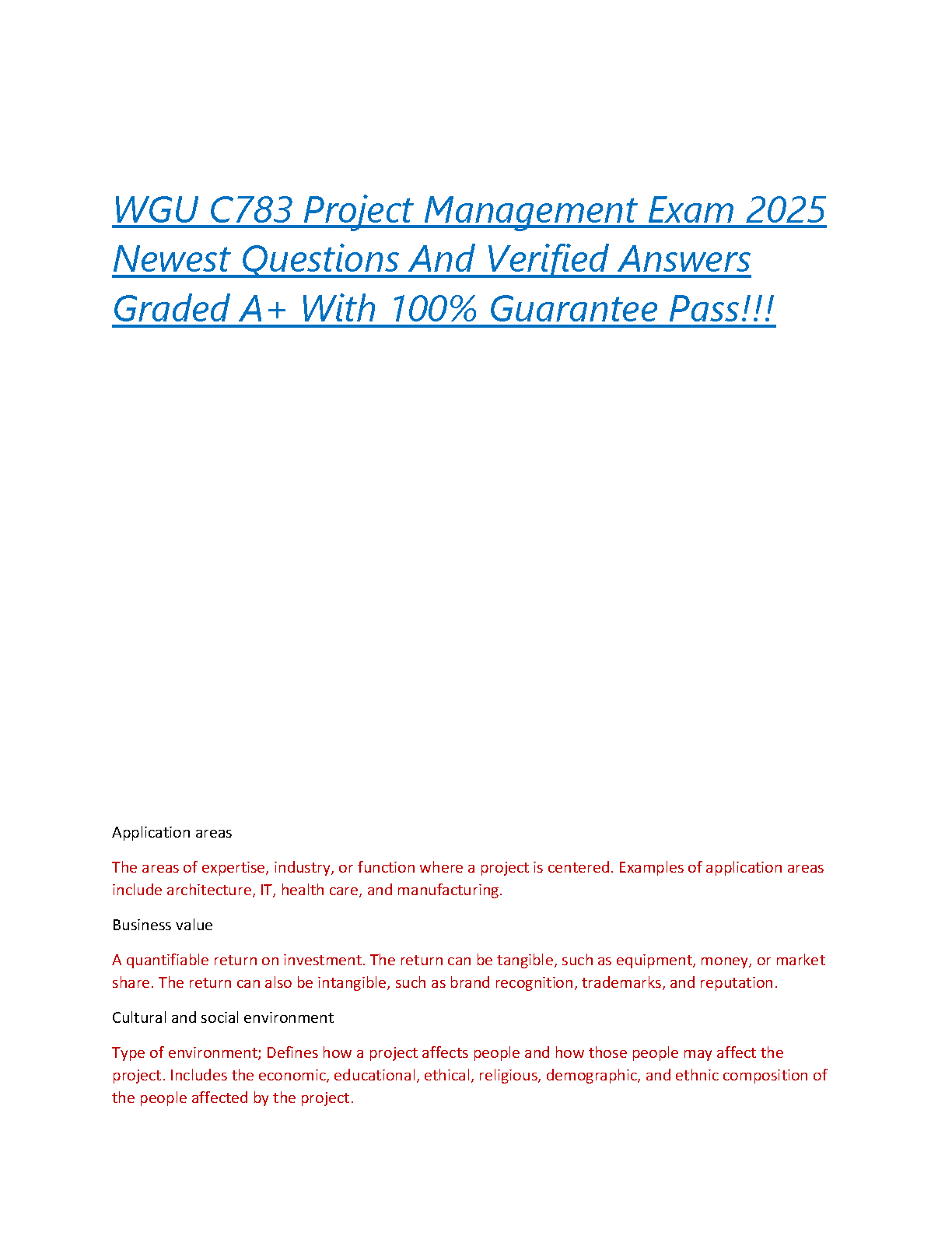 Ace your WGU C783 Project Management exam with this comprehensive resource. This 2025 edition provides the latest verified answers to the newest questions, ensuring a high score and avoiding resits. Guaranteed to help you pass on your first attempt!