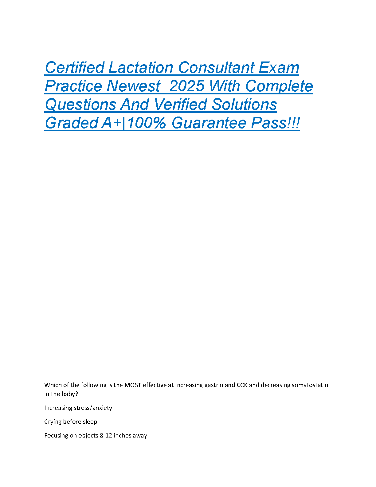 Certified Lactation Consultant Exam Practice Questions and Verified Solutions: Newest 2025 Edition