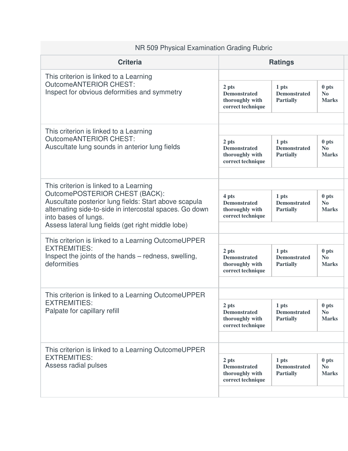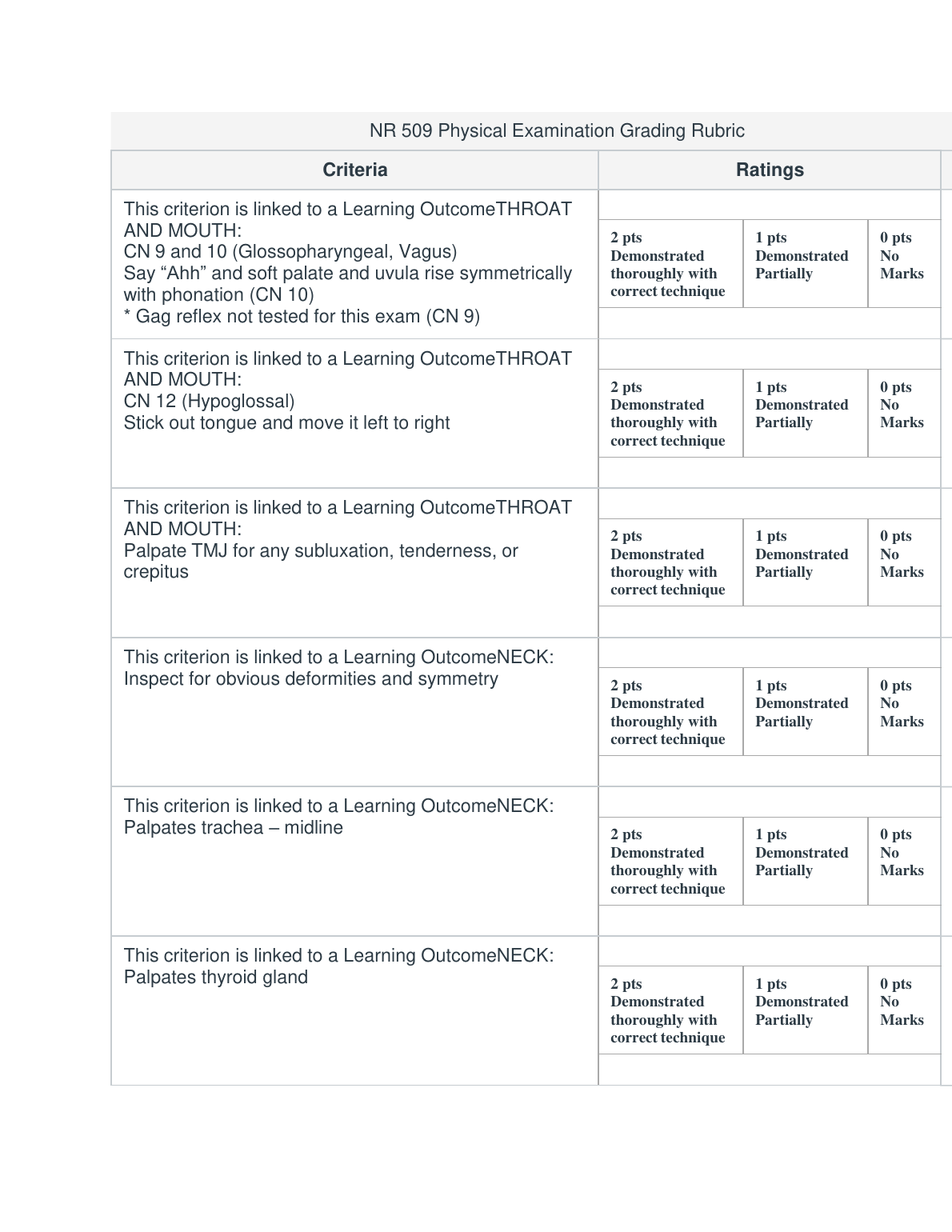 NR 509 Physical Examination Grading Rubric. GENUINE AND VERIFIED SOLUTIONS