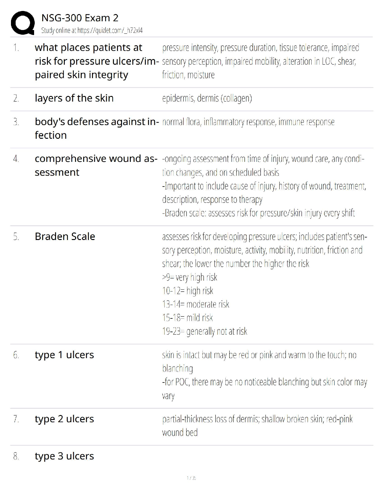Ace your NSG-300 Exam 2 with this comprehensive study guide covering pressure ulcers, skin integrity, wound assessment, and the Braden Scale. This resource is designed to help nursing students master key concepts and achieve exam success on their first attempt. Prepare effectively and avoid resits!