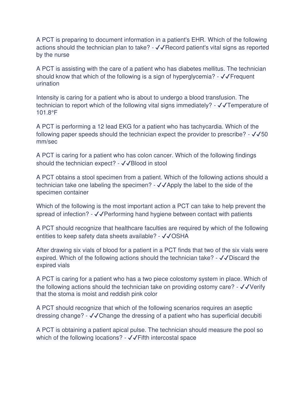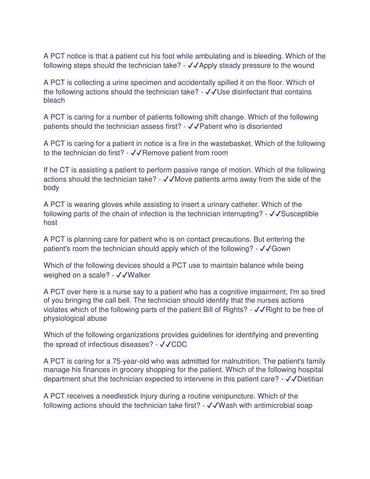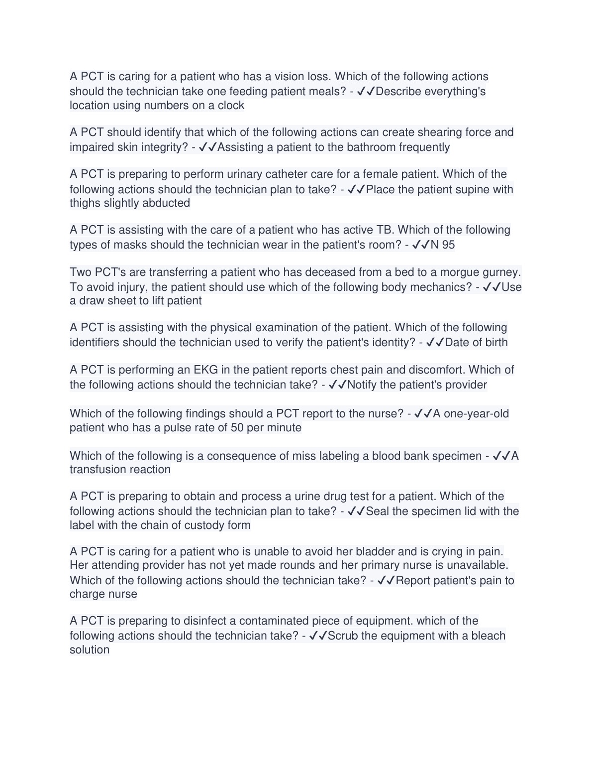 PCT Cert Exam. QUESTIONS WITH 100% VERIFIED ANSWERS 2023/2024. GUARANTEED PASS