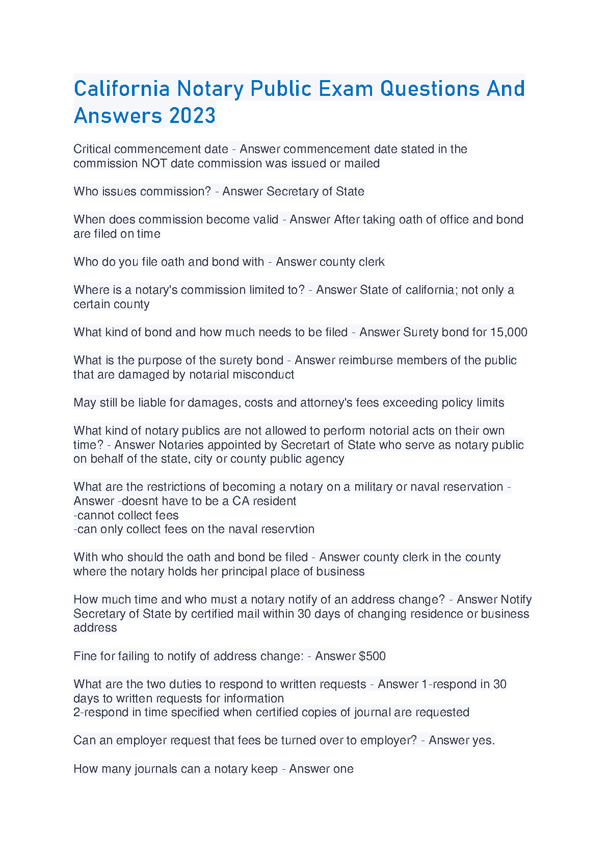 Ace the California Notary Public Exam with this comprehensive guide featuring 2023 questions and answers. This resource is designed to help you avoid resits and achieve exam success. Prepare thoroughly and confidently for your exam.