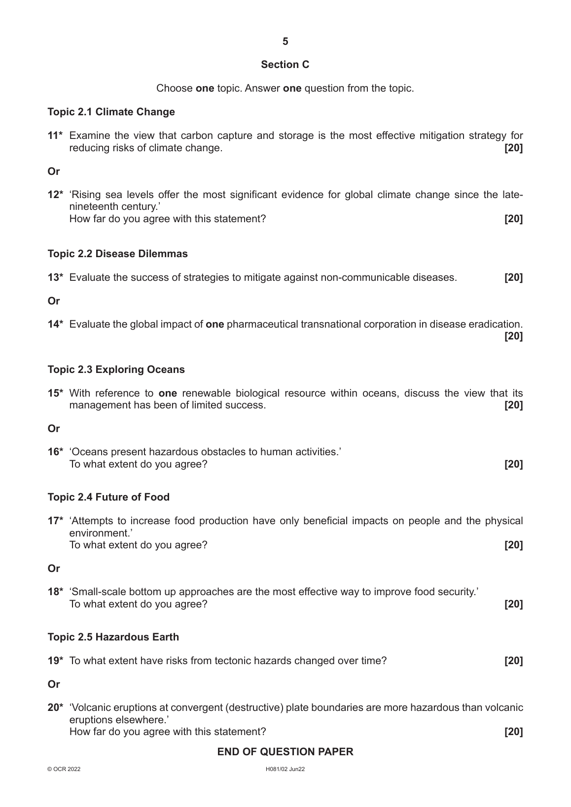 OCR AS LEVEL GEOGRAPHY PAPER 2 MAY 2022 QUESTION PAPER (H081/02: Geographical debates)