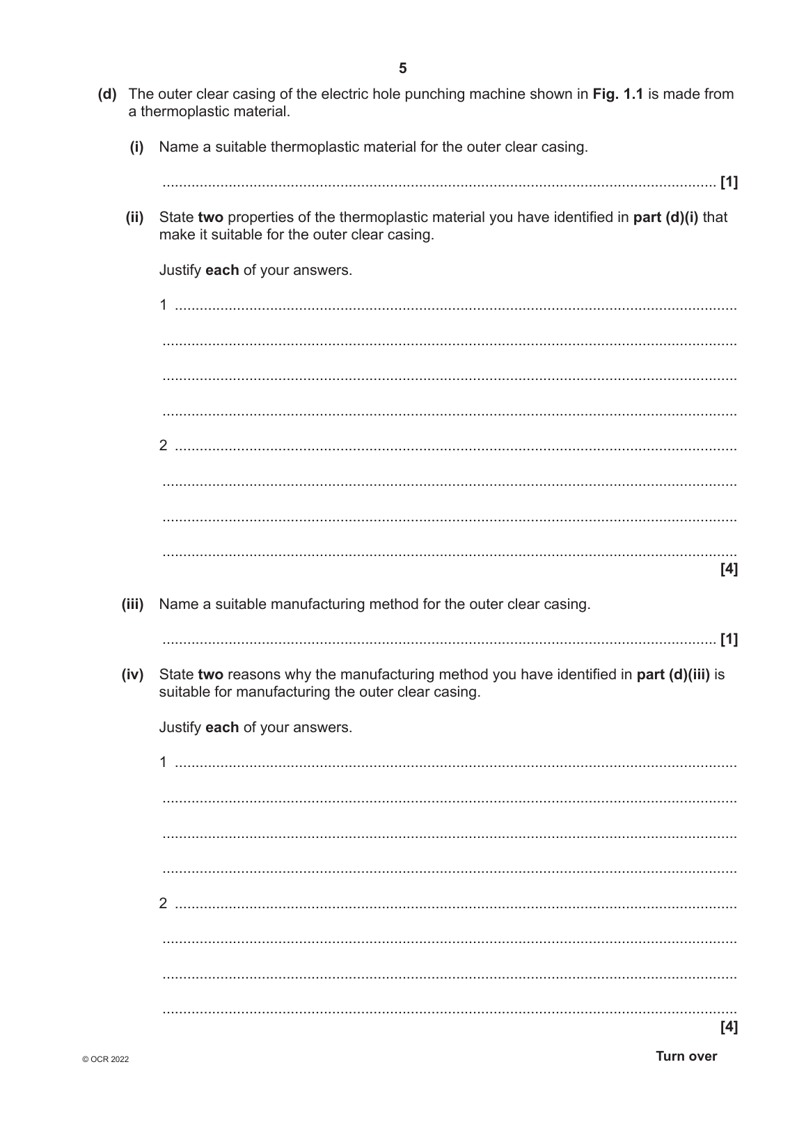 OCR AS LEVEL DESIGN AND TECHNOLOGY: Design Engineering PAPER 1 MAY 2022 QUESTION PAPER (H004/01: Principles of Design Engineering)