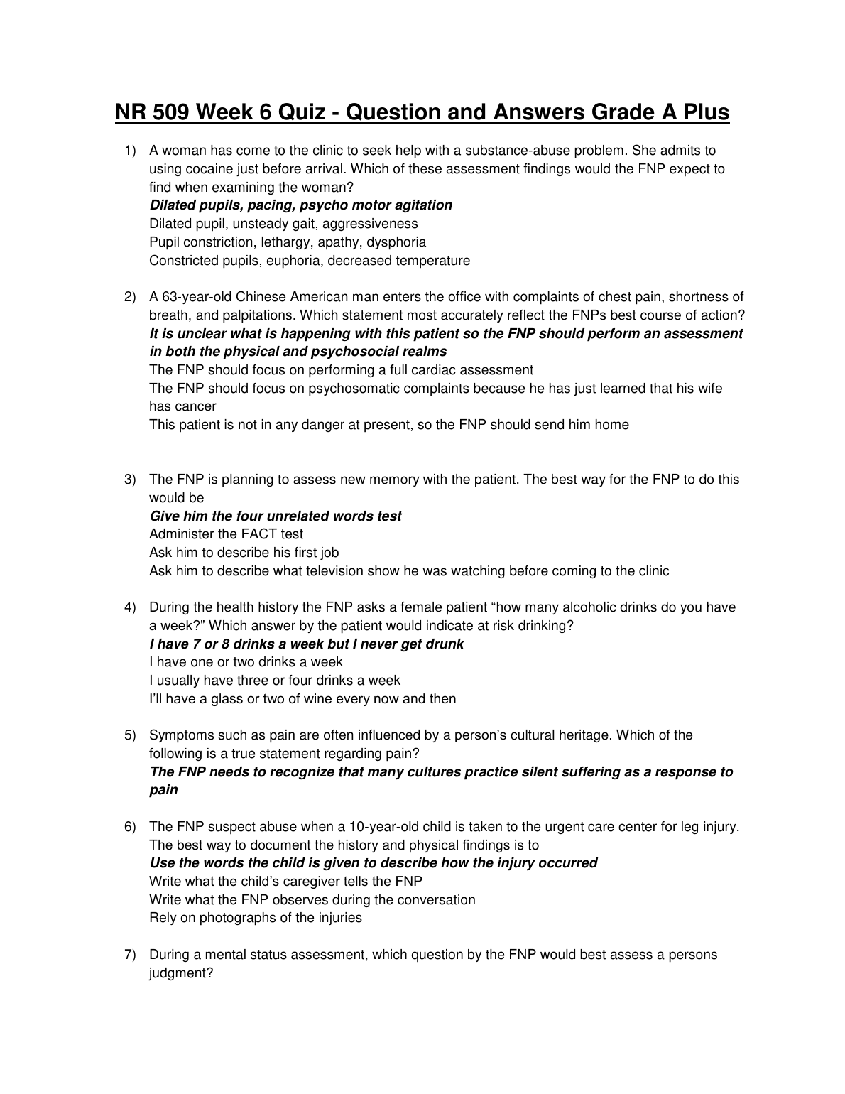 NR 509 Week 6 Quiz - Question and Answers. Grade A