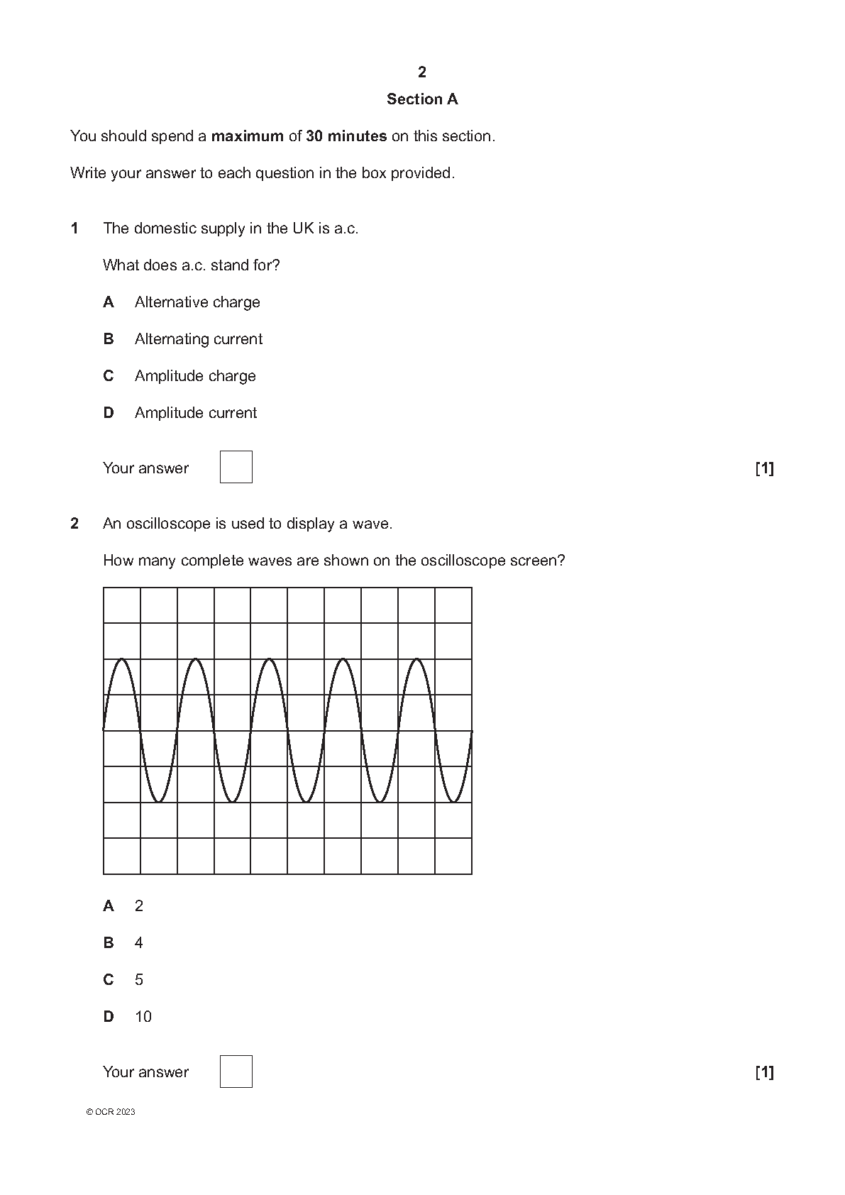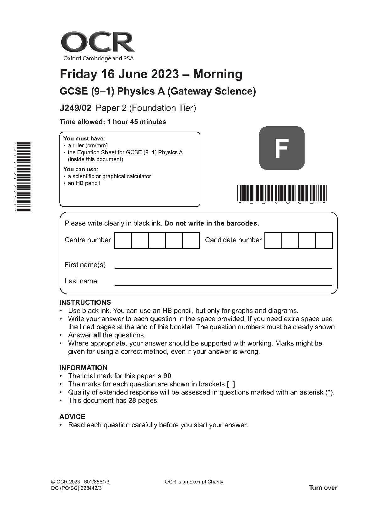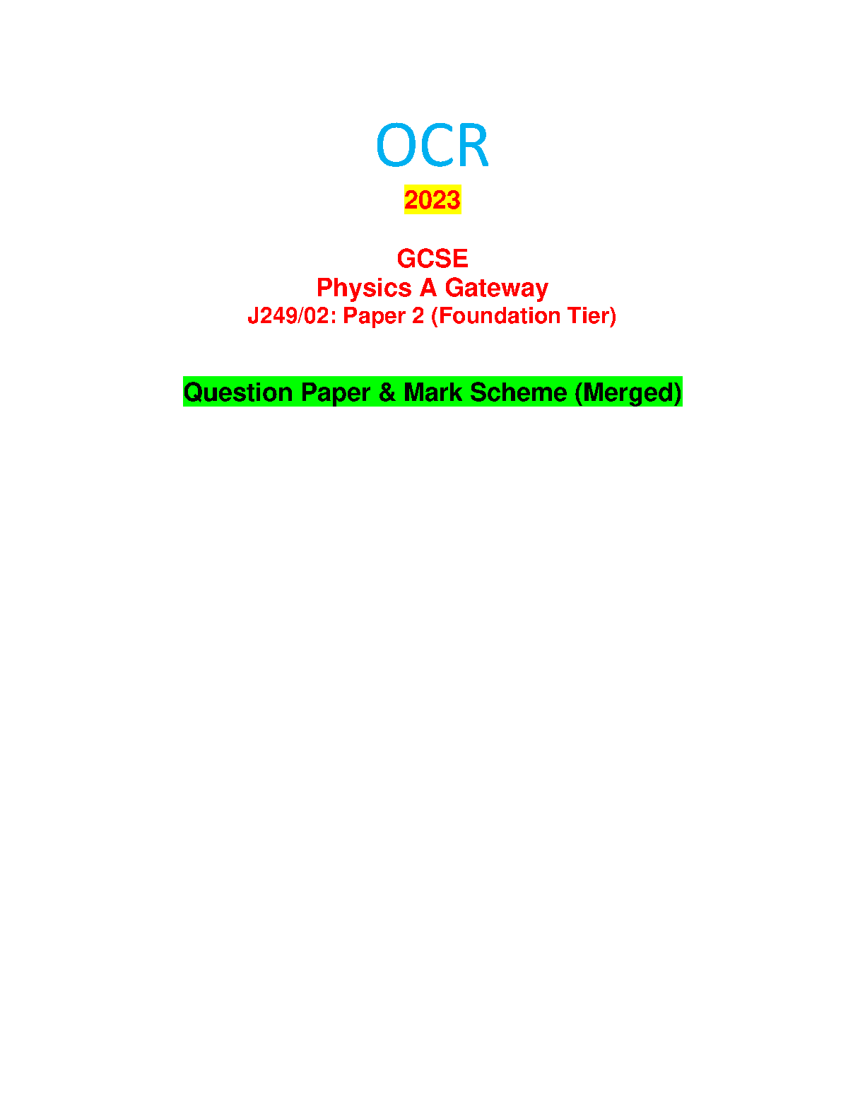 OCR GCSE Physics A Gateway J249/02 Paper 2 (Foundation Tier) 2023 Question Paper & Mark Scheme