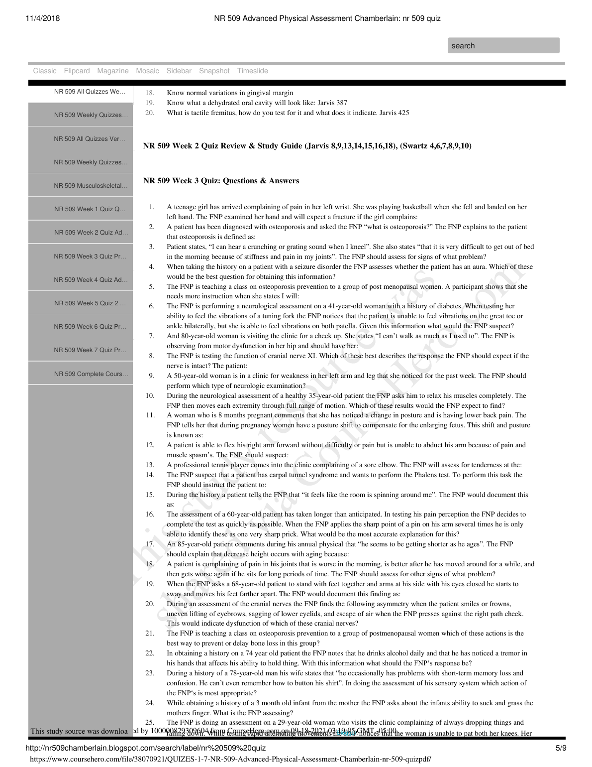 NR 509 Advanced Physical Assessment Chamberlain quiz guide QUESTIONS AND ANSWERS GRADED A+