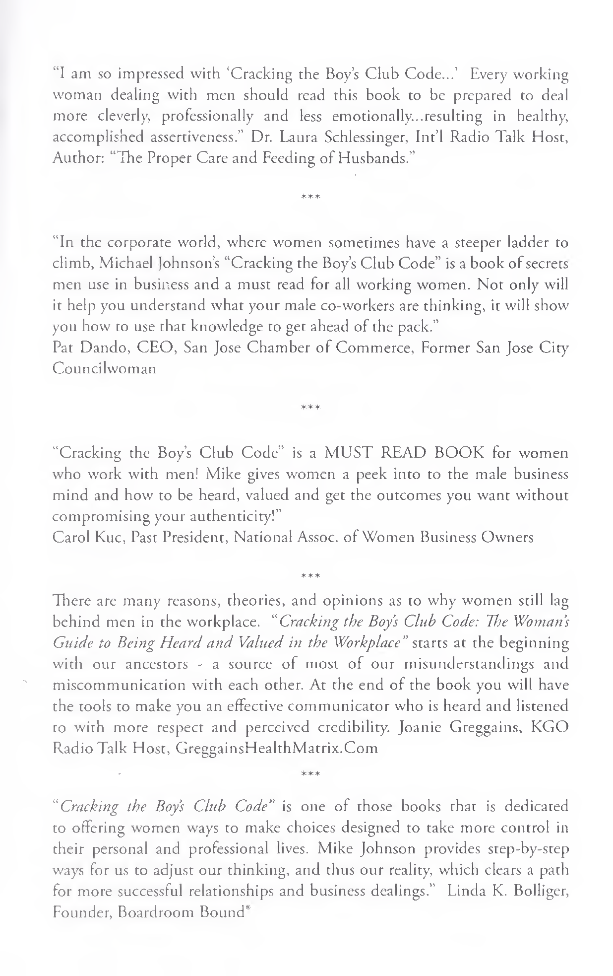 Cracking the Boy's Club Code: The Woman's Guide to Being Heard and Valued in the Workplace by Michael Johnson