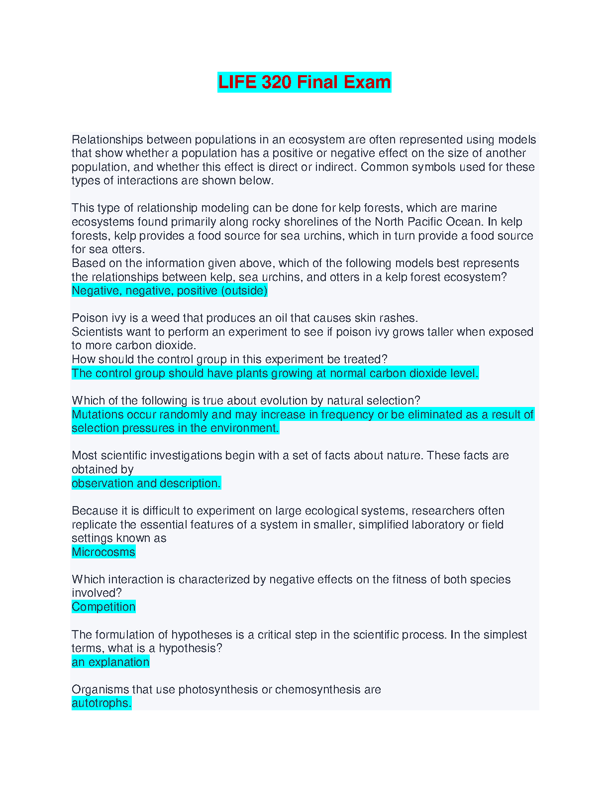 LIFE 320 Final Exam: A Complete Guide for Students to Ace the Exam