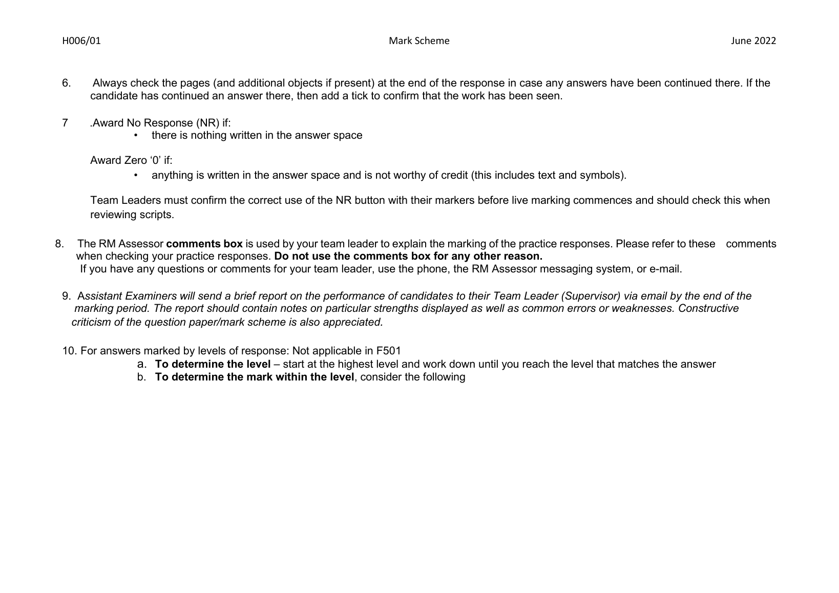 OCR AS LEVEL DESIGN AND TECHNOLOGY: Product Design PAPER 1 MAY 2022 MARK SCHEME (H006/01: Principles of Product Design)