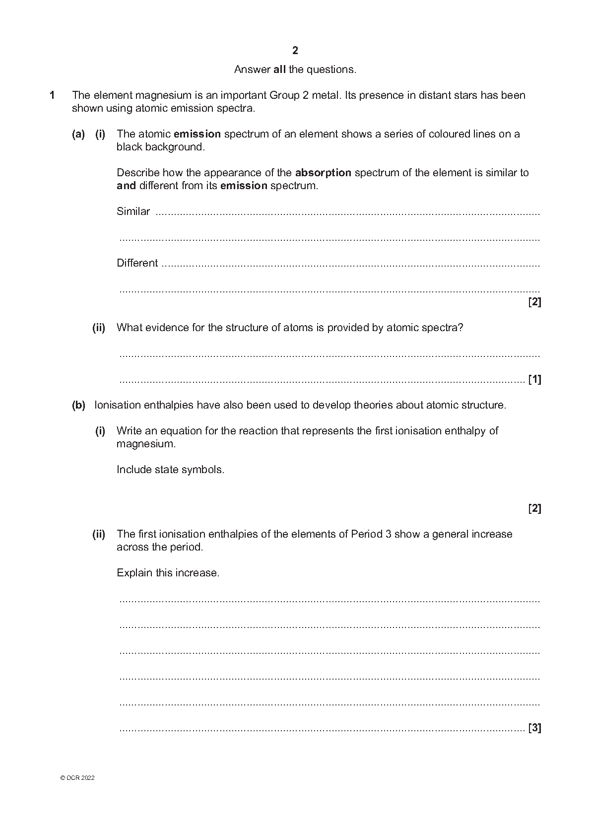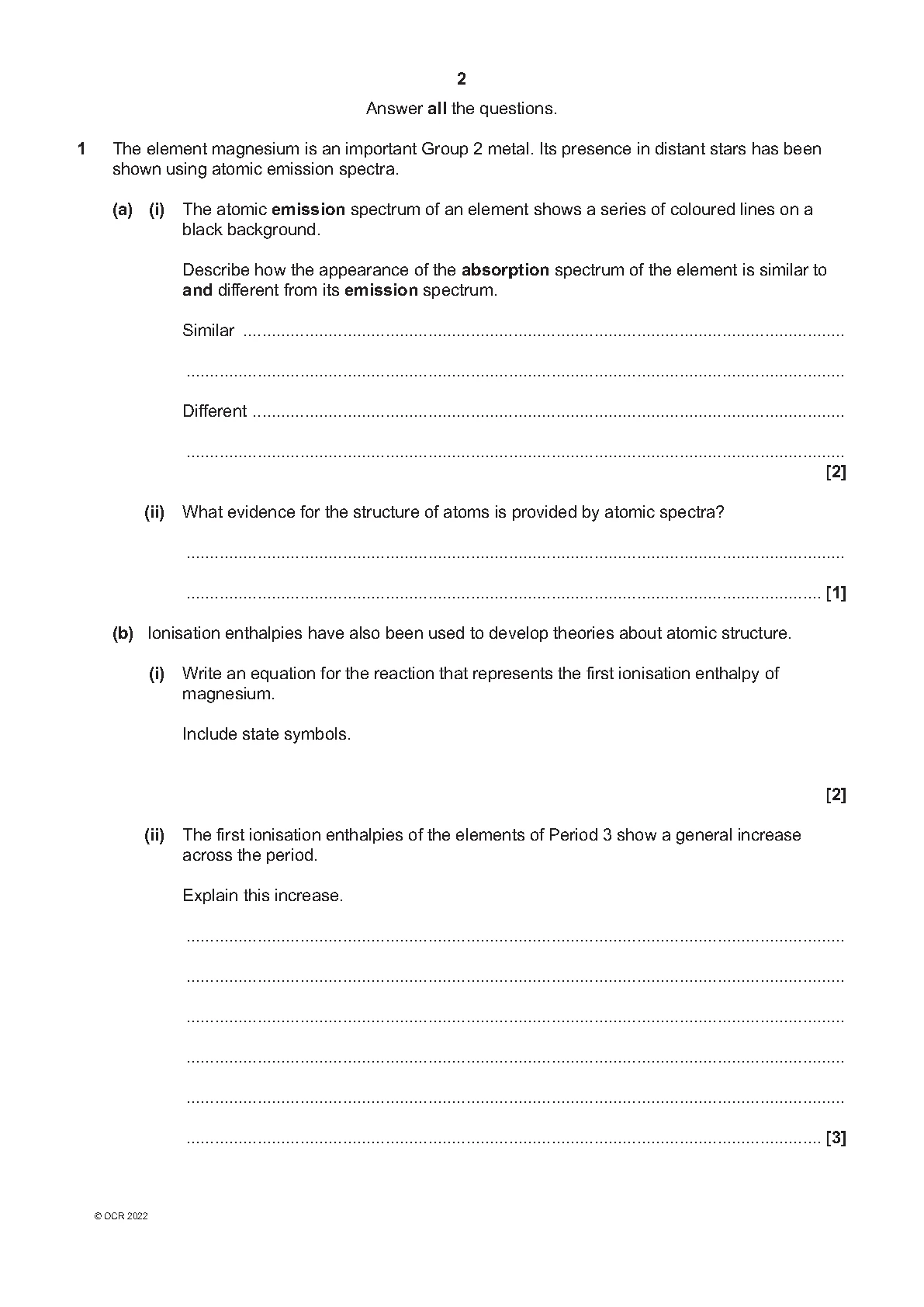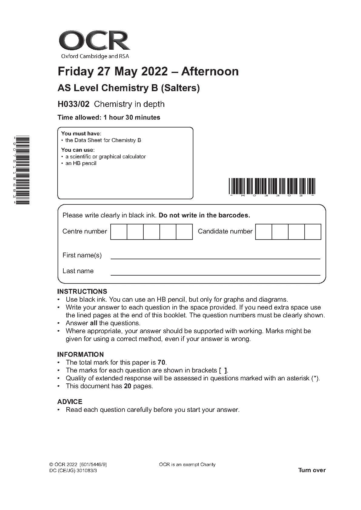 OCR AS Level Chemistry B (Salters) H033/02 Chemistry in Depth: 2022 Exam Paper