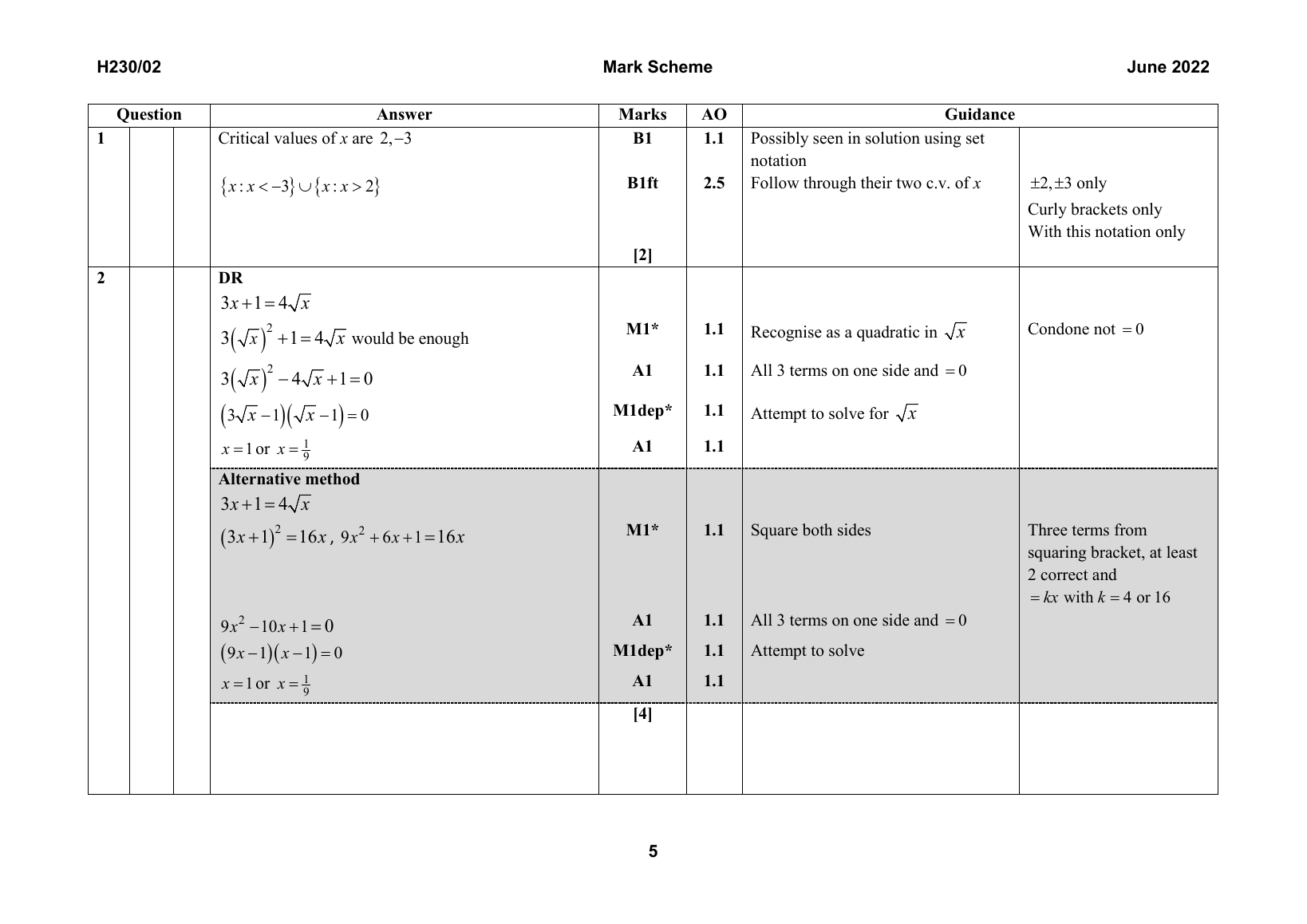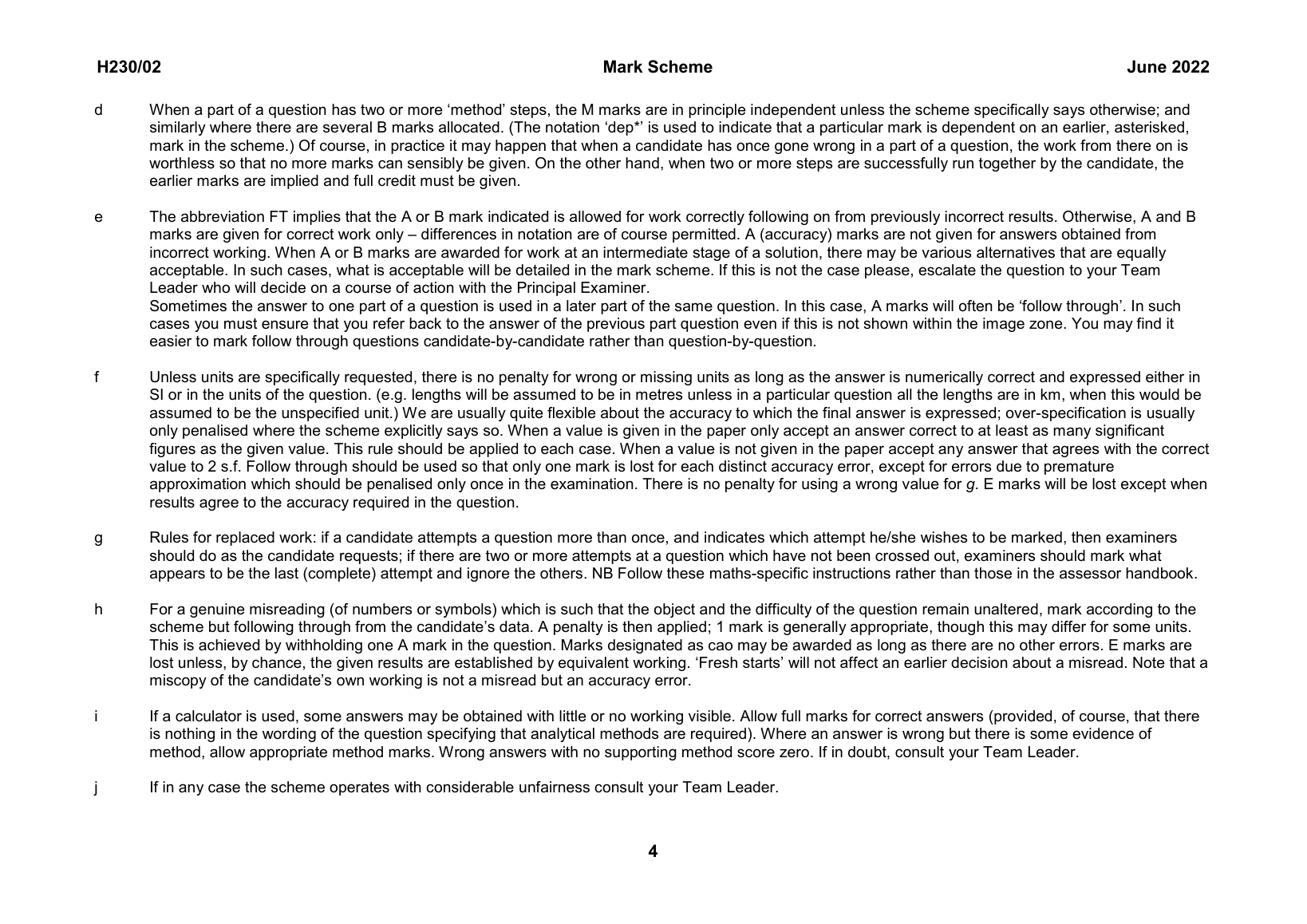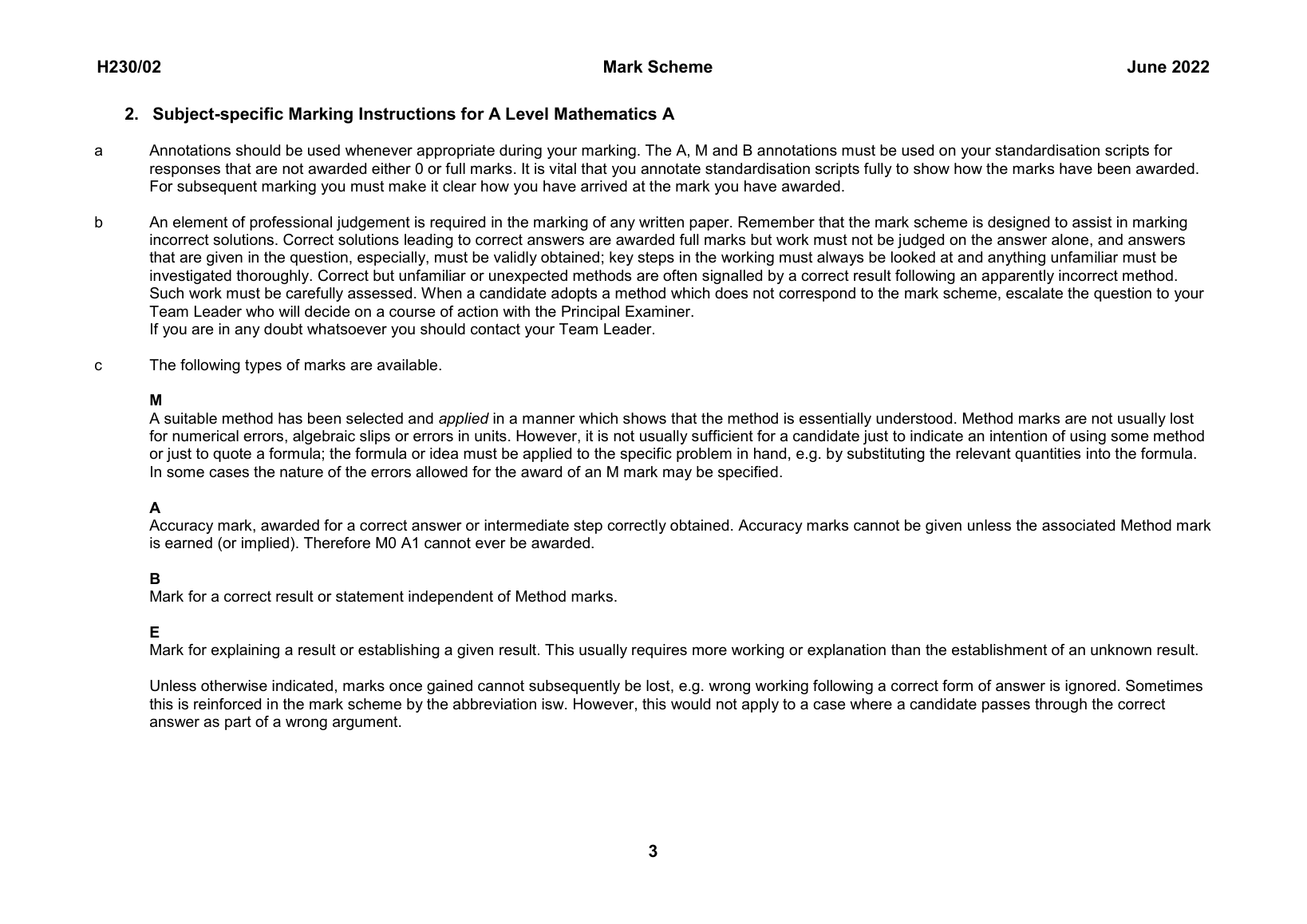 OCR AS LEVEL MATHEMATICS A PAPER 2 MAY 2022 MARK SCHEME (H230/02: Pure Mathematics and Mechanics)