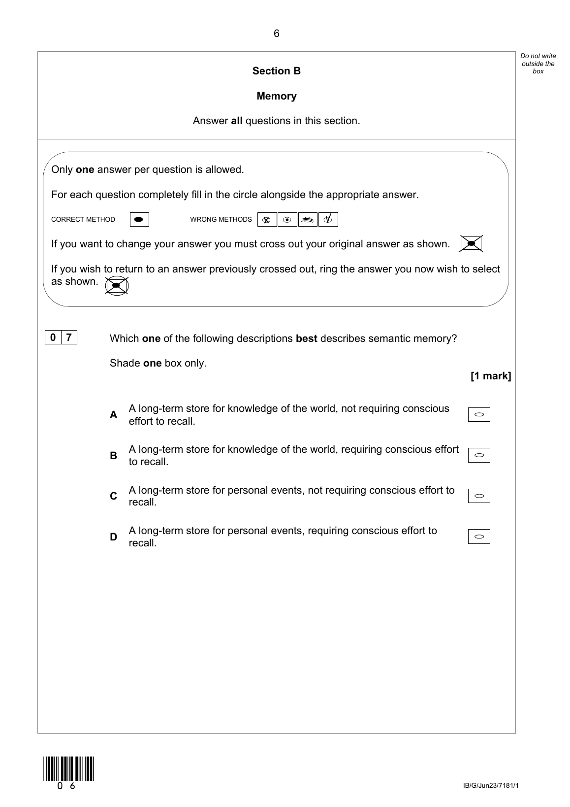 AQA AS PSYCHOLOGY PAPER 1 MAY 2023 QUESTION PAPER (7181/1: Introductory topics in psychology)