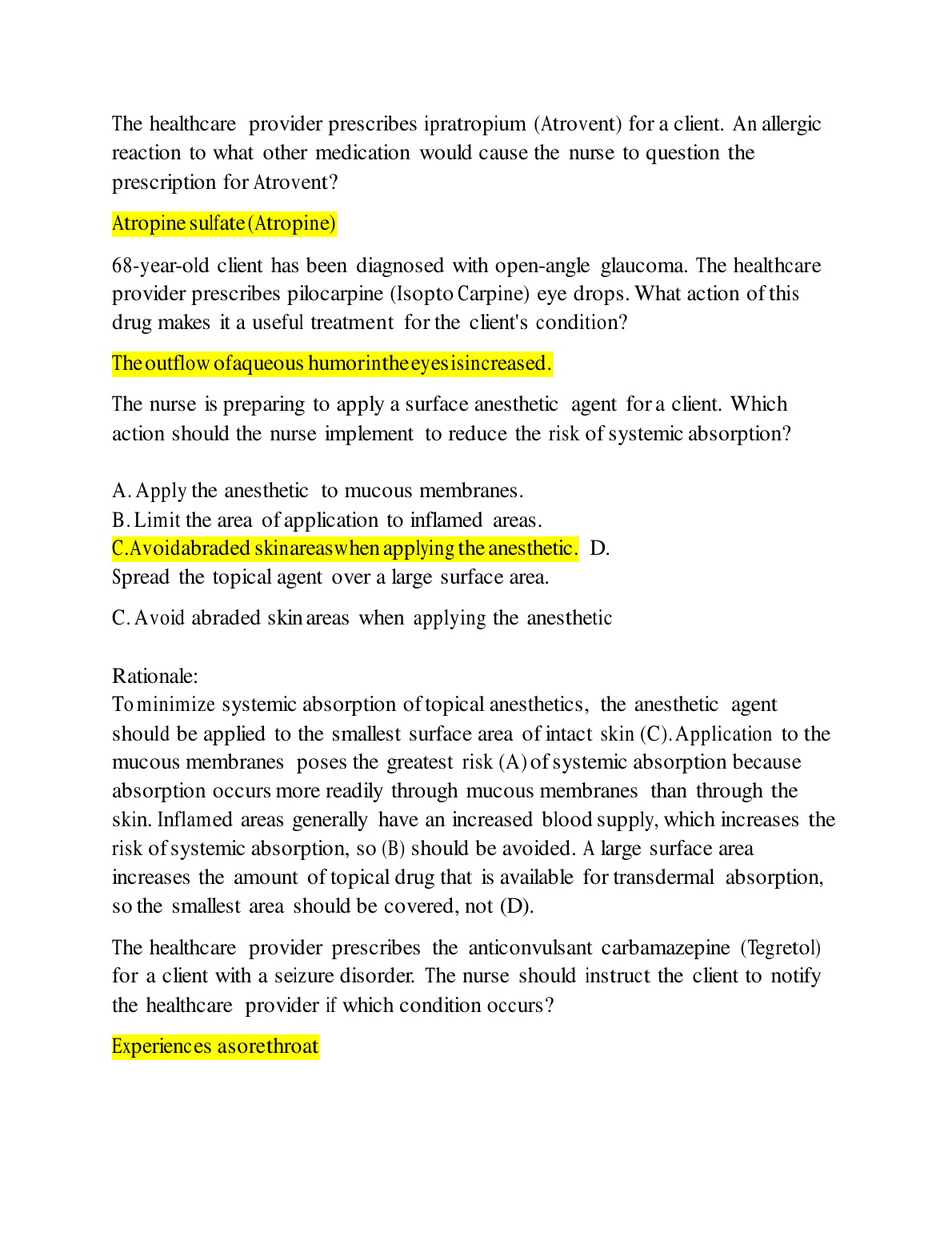 NR 509 PHARMACOLOGY HESI PRACTICE EXAM 3 REVIEW 2022/2023 Pharmacology HESI Comprehensive Review