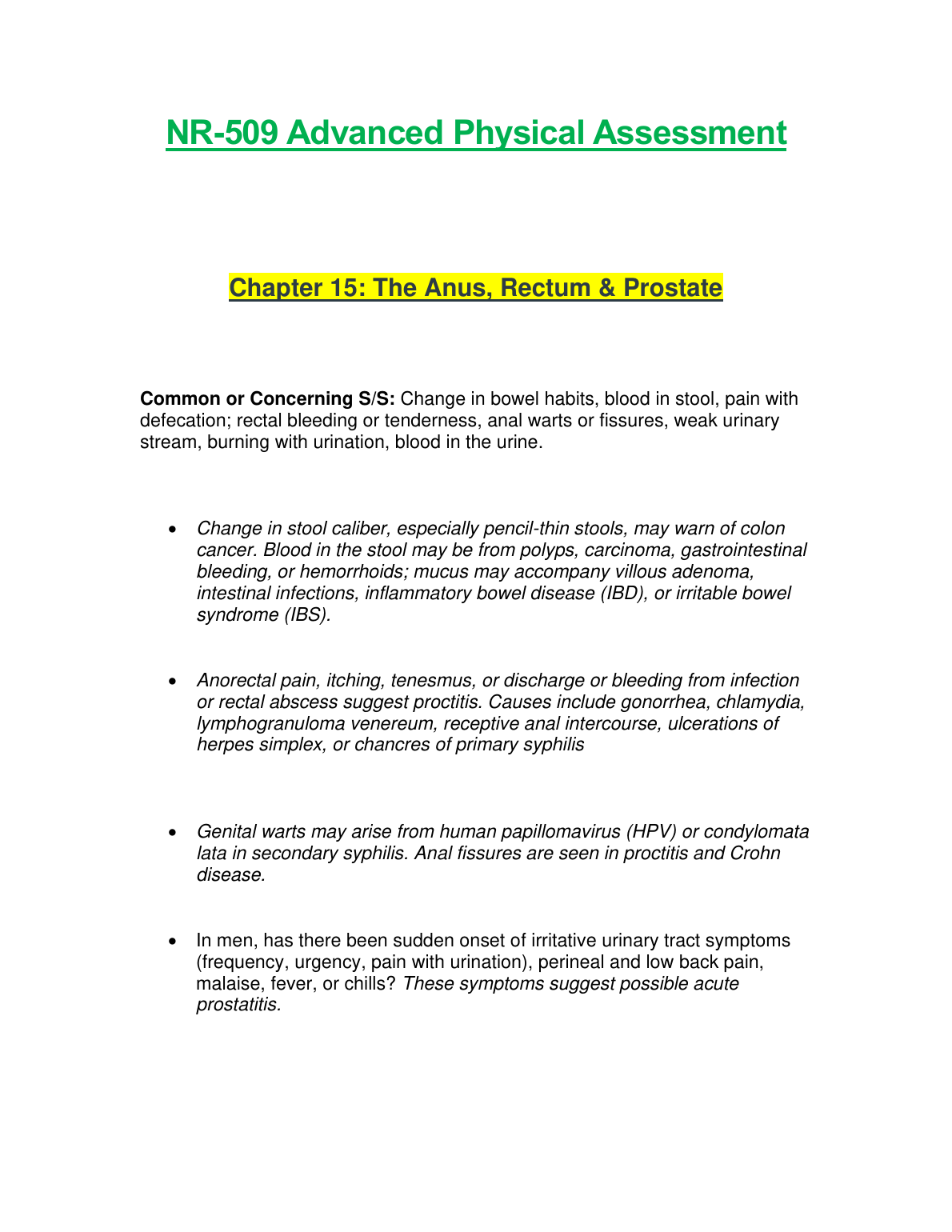 NR-509 Advanced Physical Assessment Chapter 15: The Anus, Rectum & Prostate COMPLETE GUIDENR-509 Advanced Physical Assessment Chapter 15: The Anus, Rectum & Prostate COMPLETE GUIDE