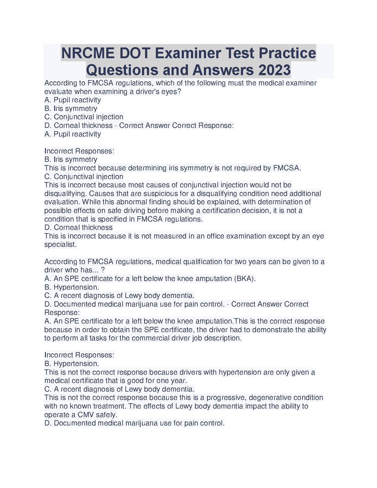 NRCME DOT Examiner Test Practice Questions and Answers 2023: Pass Your Exam on the First Attempt