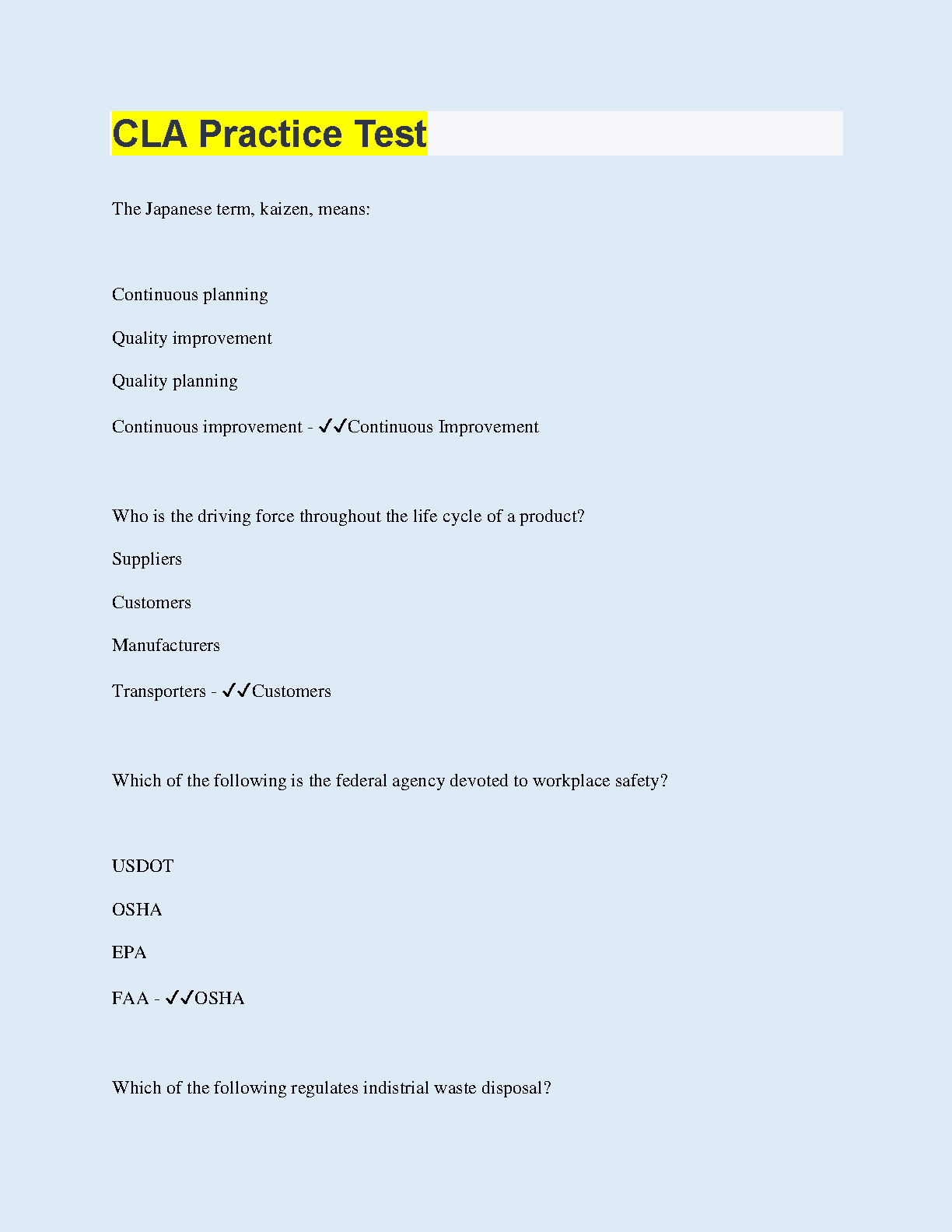 Prepare for your CLA exam with confidence using this practice test. This resource covers key concepts to help you master the material and pass on your first attempt. Get started now and avoid resits!