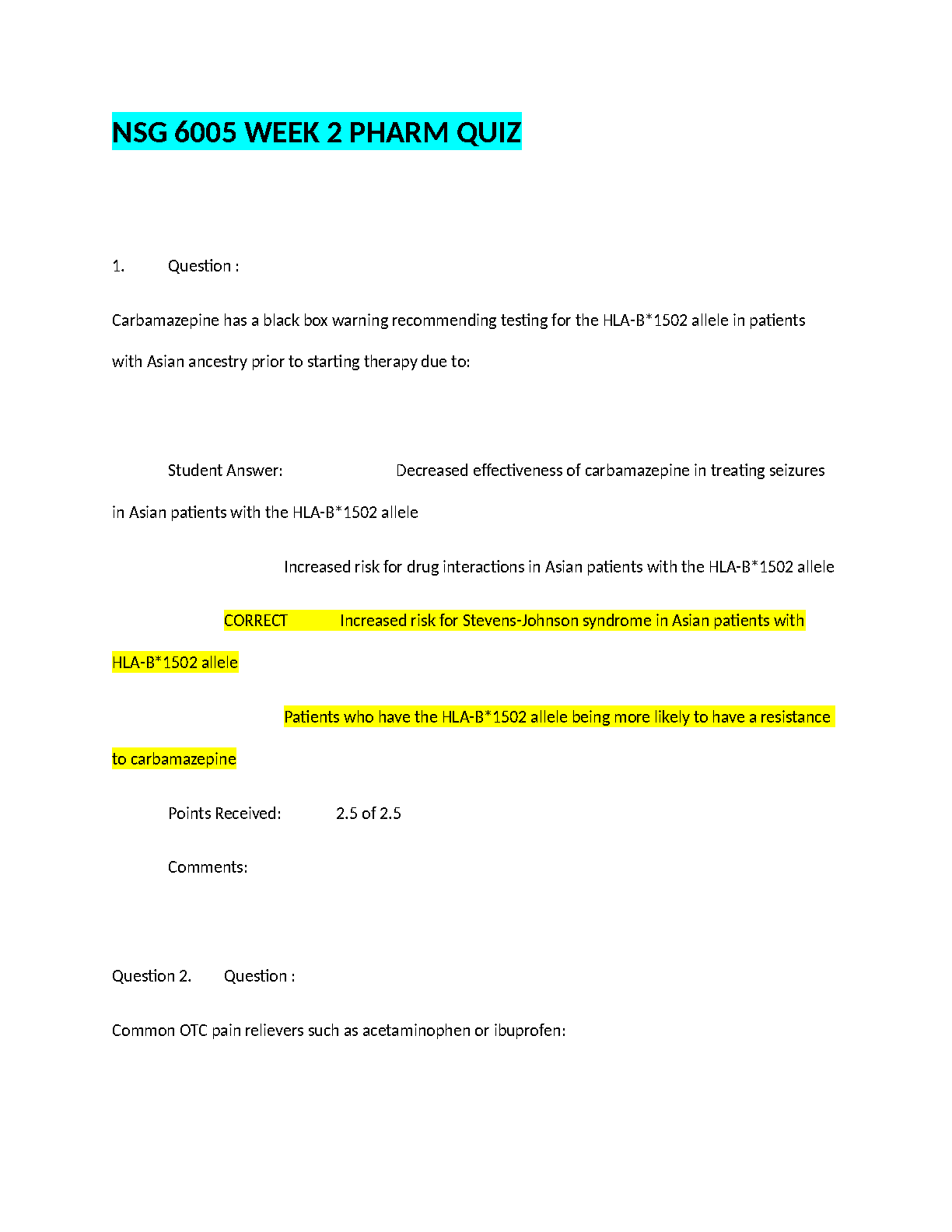 NSG 6005 Week 2 Pharm Quiz: Acetaminophen, Ibuprofen, and Carbamazepine - 2024/2025 Edition