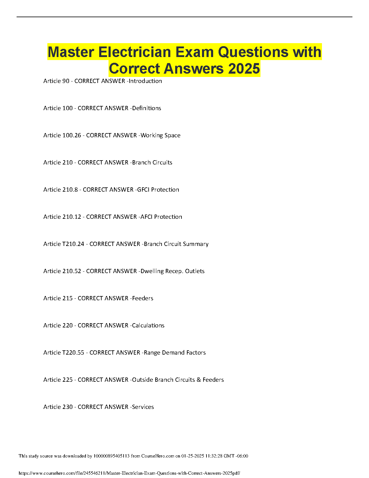 Ace your Master Electrician exam with this comprehensive 2025 study guide. This resource features detailed questions and answers covering key topics like introduction, definitions, working space, branch circuits, GFCI and AFCI protection, feeders, calculations, and more. Designed to help you pass on your first try and avoid resits.