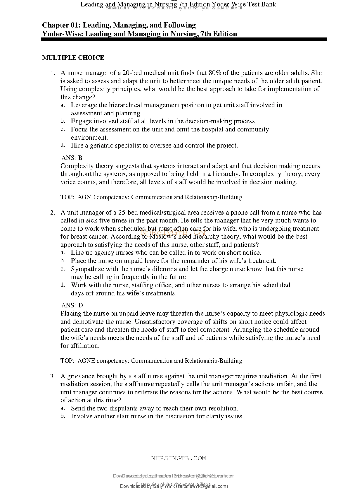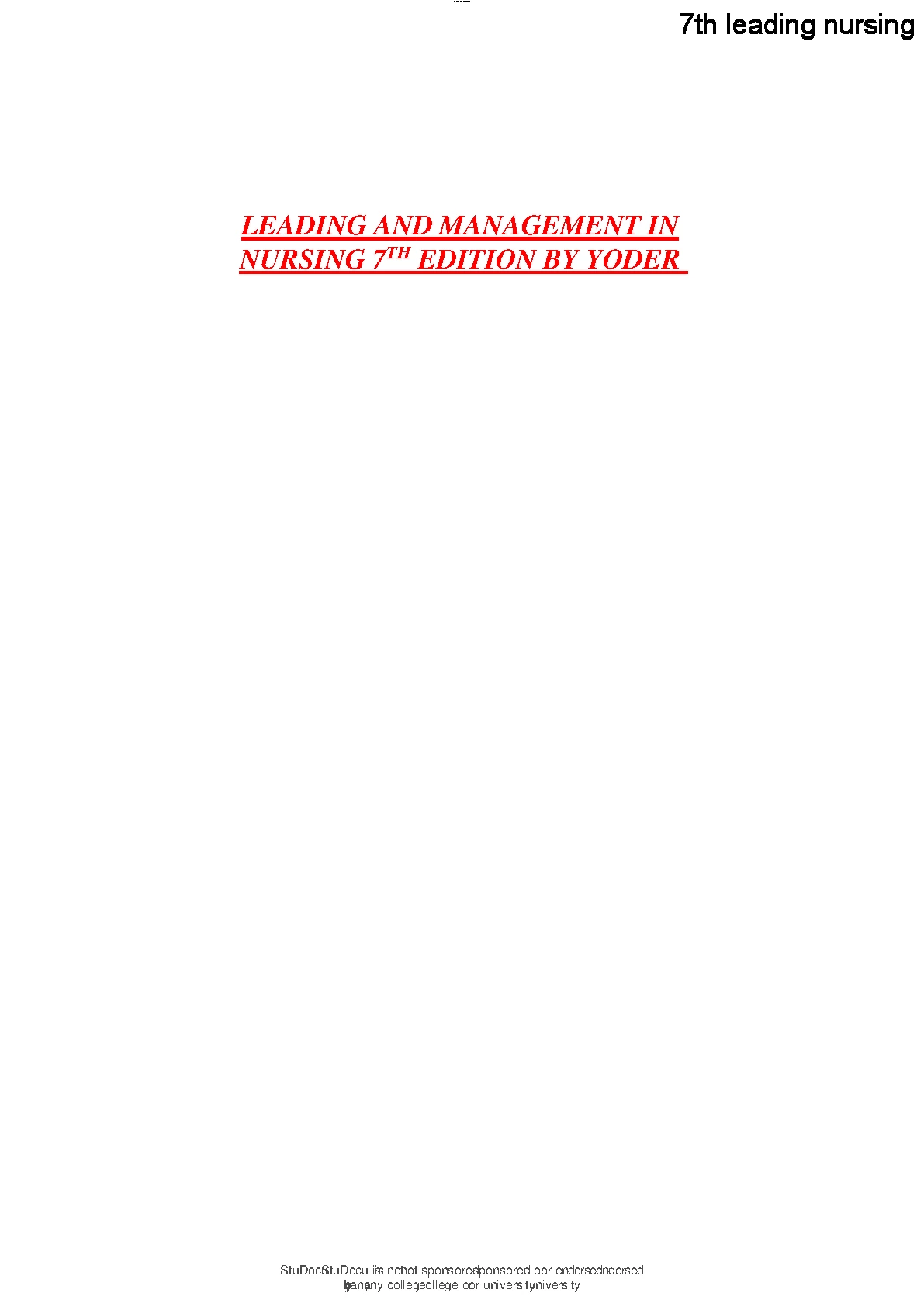 Ace your nursing management exams with this comprehensive guide! This resource covers all the essential topics in Leading and Management in Nursing, 7th Edition, designed to help students master the material and pass their exams the first time. Prepare for success in the 2024/2025 academic year.