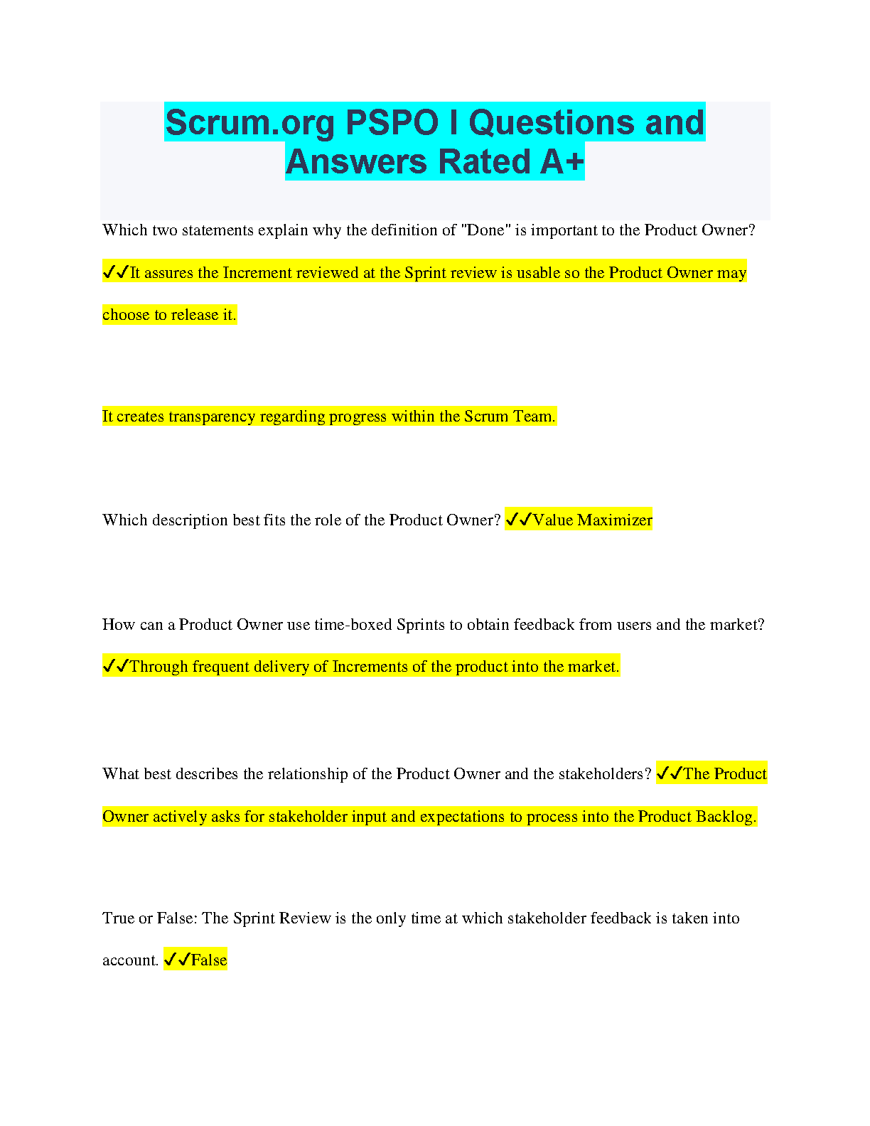 Pass your Scrum.org PSPO I exam on the first try with this comprehensive guide. This resource provides A+ rated questions and answers, covering key concepts and helping you avoid resits. Perfect for the 2024/2025 academic year.