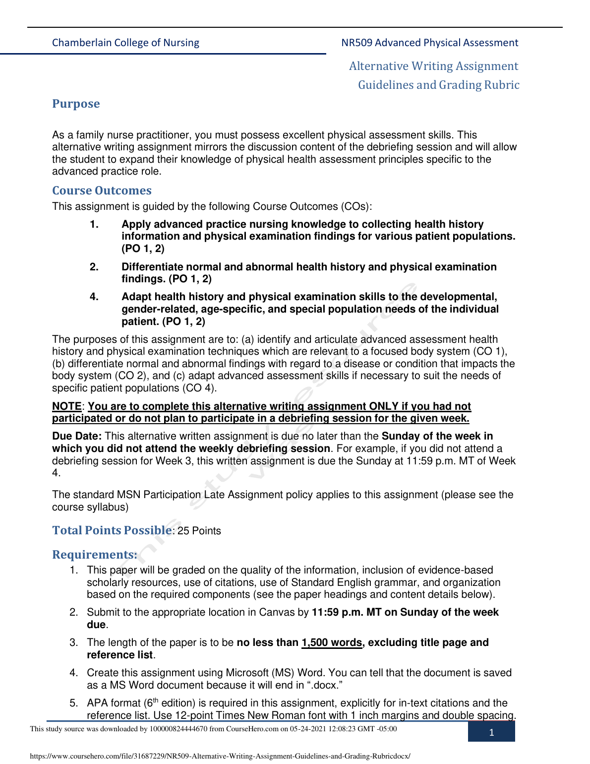 Chamberlain College of Nursing NR509 Advanced Physical Assessment 2023 SERIES