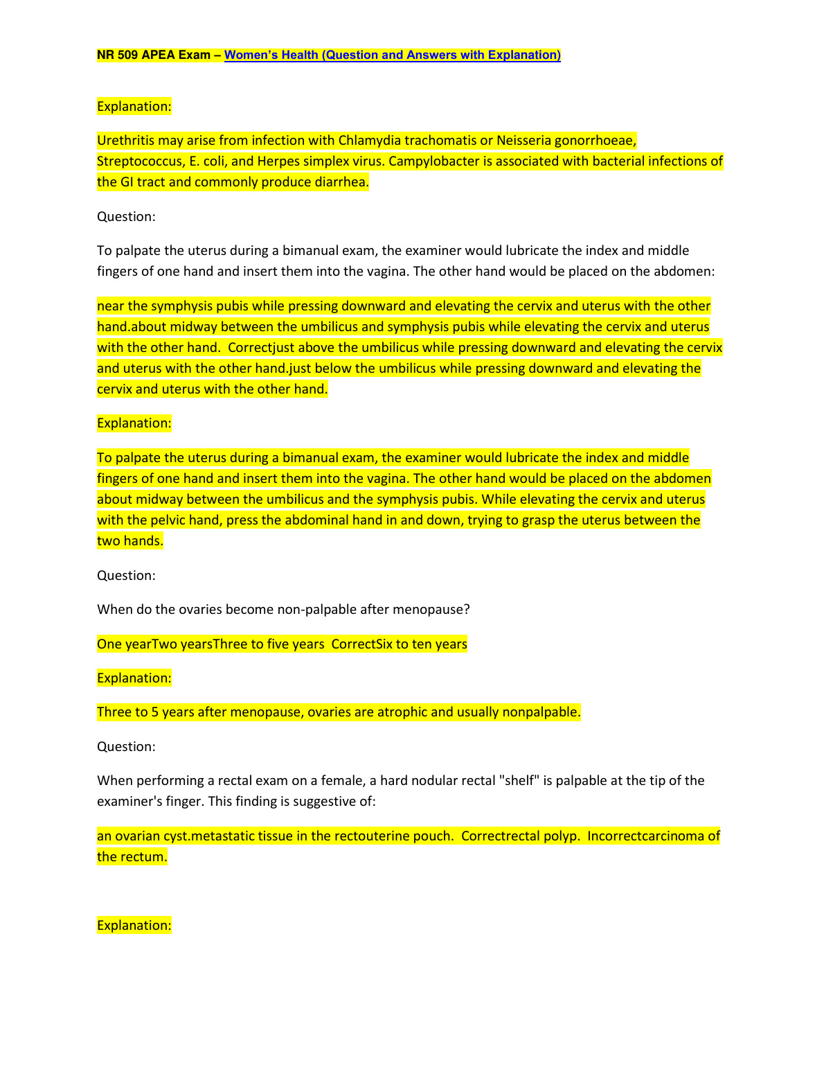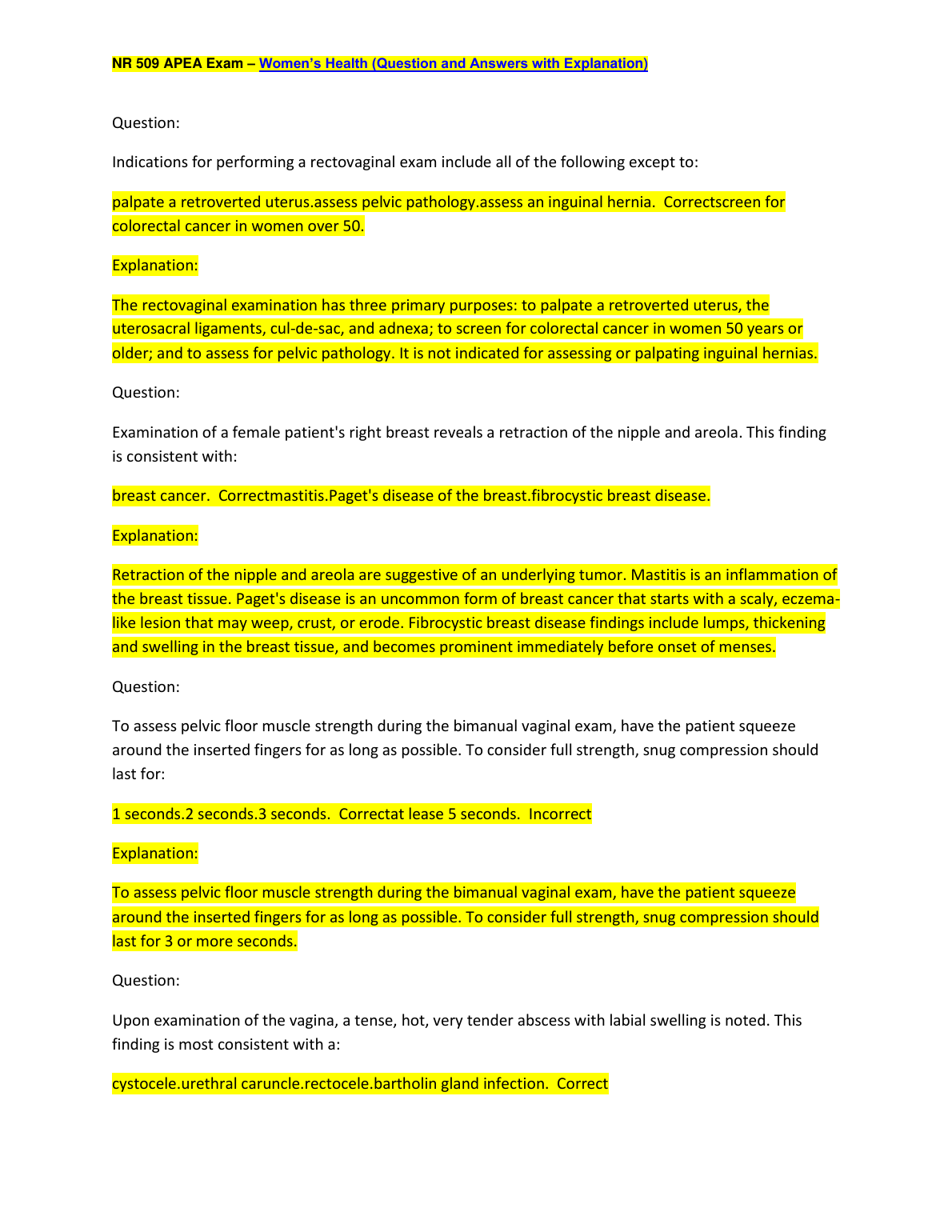 NR 509 APEA Exam – Women’s Health (Question and Answers with Explanation) BRAND NEW SOLUTION!!!. DOWNLOAD on www.hackedexams.com INSTANTLY.