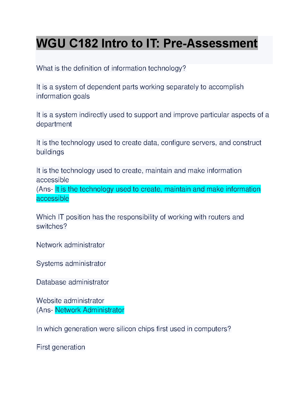 Ace your WGU C182 Intro to IT exam with this comprehensive pre-assessment. Prepare for success on your first attempt and avoid resits with this practice resource designed to help you master key concepts. This 2024/2025 edition covers all essential topics.